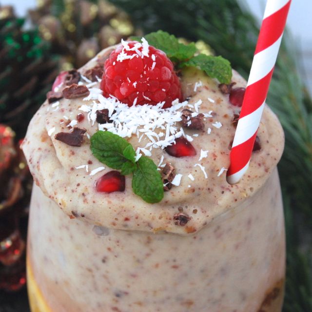Fruit cake is often a tradition in many households at Christmastime but today I’m taking that age-old custom and giving it a healthy Goofy Foot twist. My Holiday Fruit Cake Smoothie keeps with the tradition of using dried fruits, nuts and spices without the heaviness of a boozy cake. This recipe can be adapted to your liking by switching out the type of nut milk, dried fruits and spices to something more suitable to your taste. Adding rum is not off the list of possibilities either, but I would recommend using an organic rum from a company like Greenbar Crafts who makes a Crusoe Organic Rum.