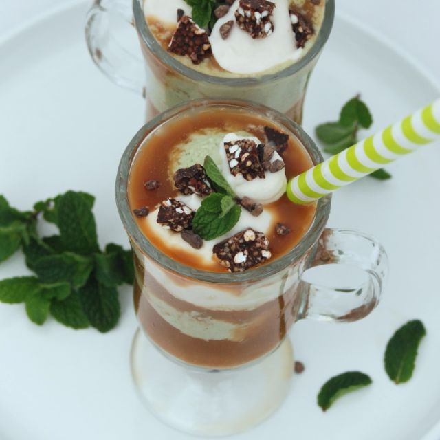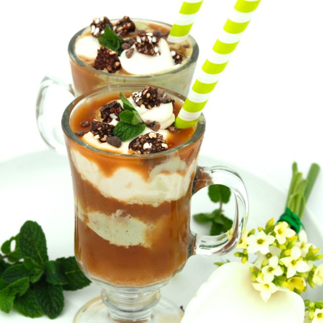 - Add 1 scoop Mint Coconut Ice Cream