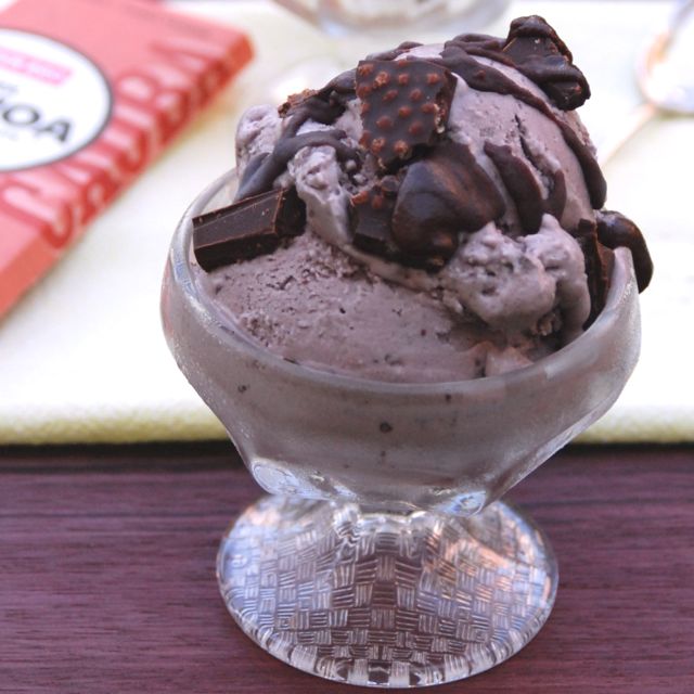 - Remove cream from ice cream maker and fold in chocolate chunks. Place in an ice cream container and freeze until ready to serve.