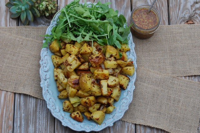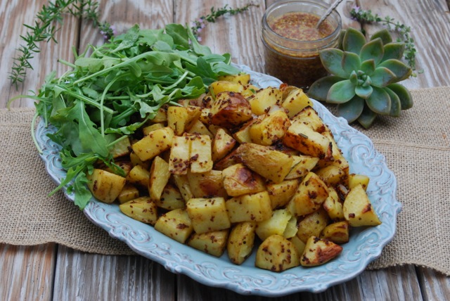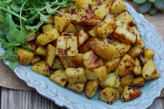 Now that summer is in full-swing, it’s funny how potatoes seem to make an appearance at almost every gathering. From potato chips to potato salad, this simple tuber is an all-star spud that demands attention. Although, I love a good traditional style potato salad, today I’m offering you an upgrade of sorts. Our Roasted Rosemary Mustard Potatoes are definitely a showstopper and winner in my book for both presentation and taste. We’ve combined whole-grain mustard, rosemary, and yellow onions for a crispy potato dish with just the right bite and crunch. Delicious!