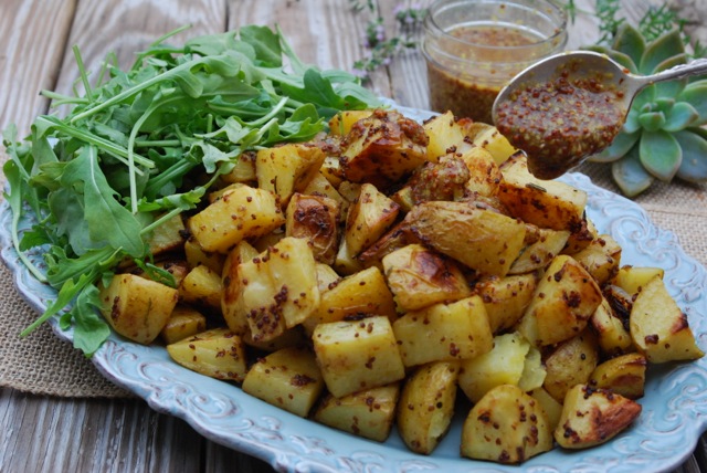 - Pour mustard mixture over potatoes and onions. Toss until well coated.