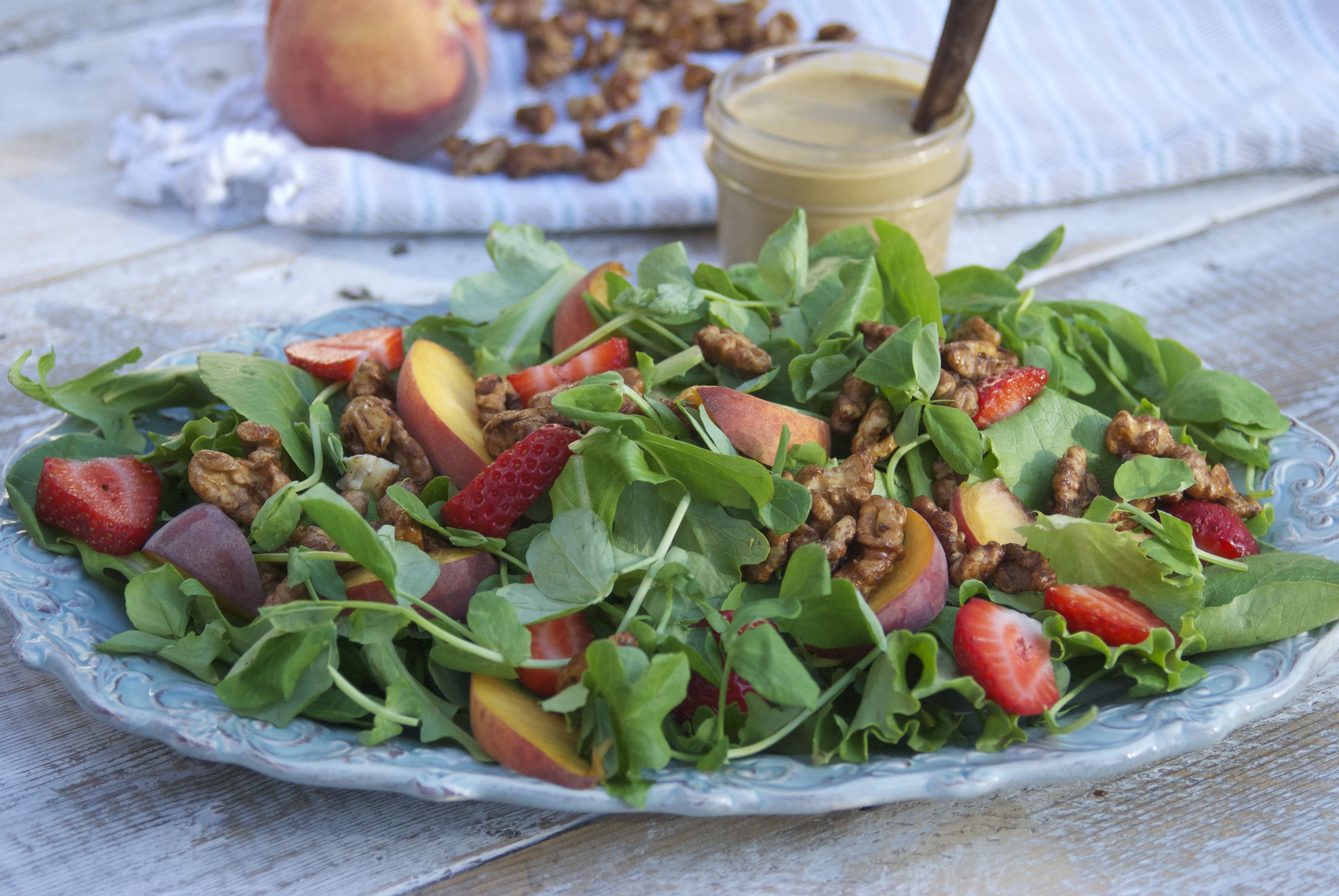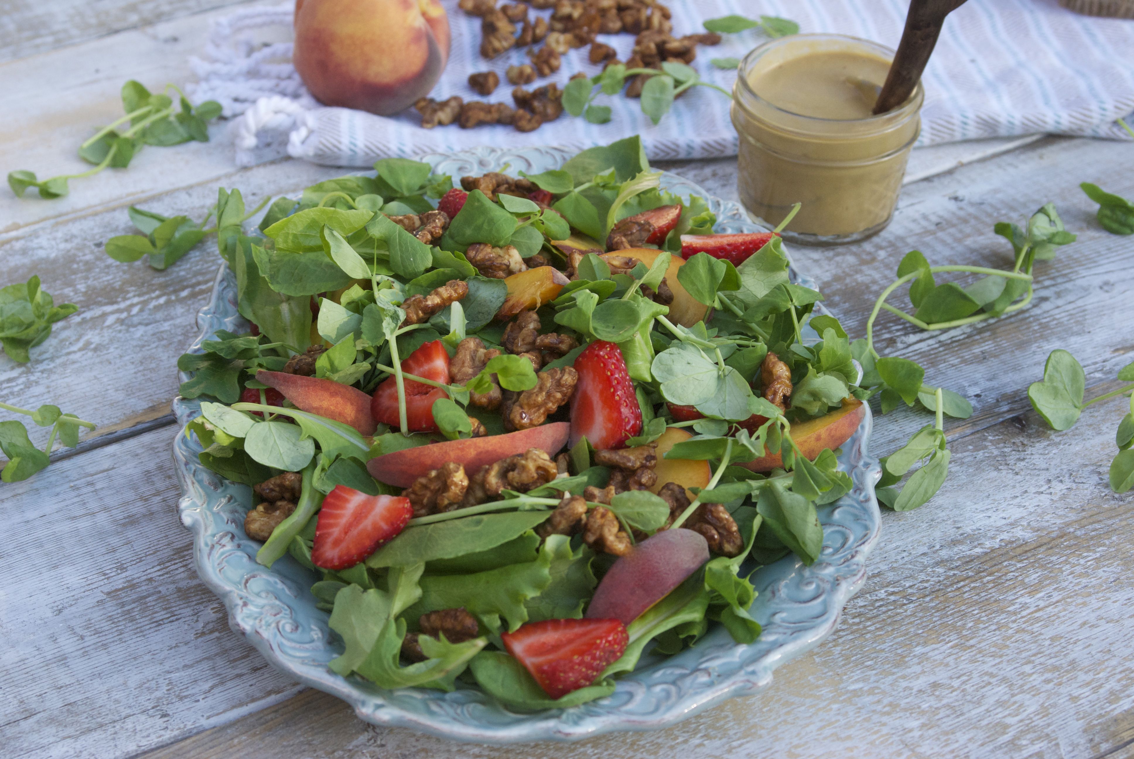 Sweet Pea Shoots and Peaches Salad:
