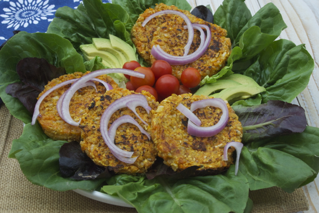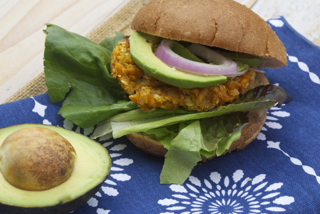 Note: I prefer the no-bun style of eating veggie burgers. Simply wrap your burger in some sturdy greens (romaine, kale, collards), and add your favorite condiments and toppings. This is a great choice for reducing calories and increasing nutrition.