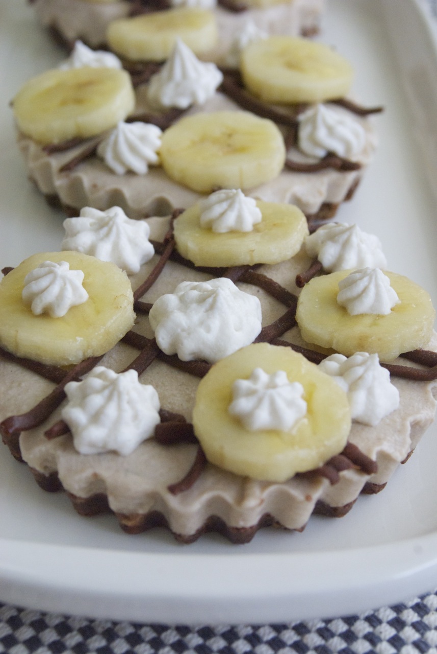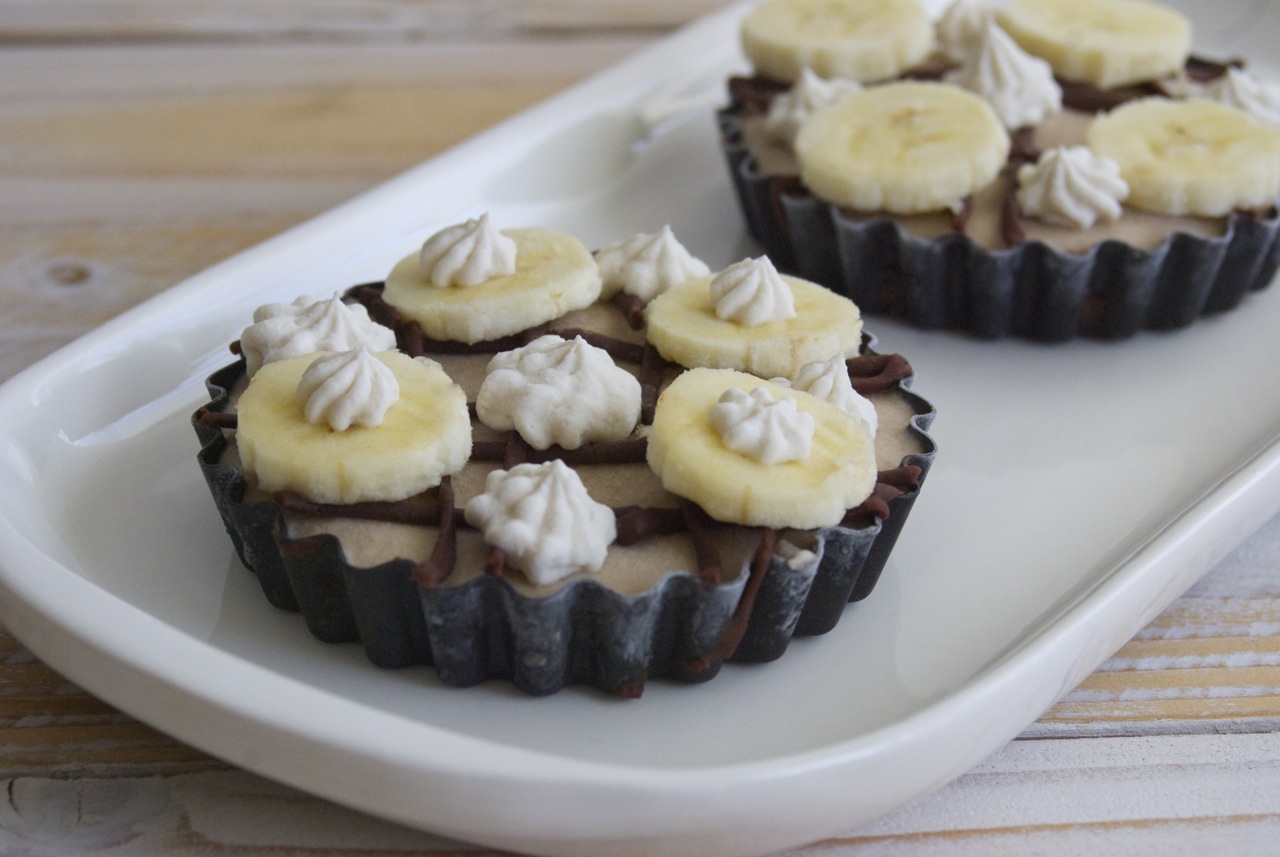 - Pour banana filling over crust in prepared tartelette pans. Place in freezer to set. This step only took about an hour.