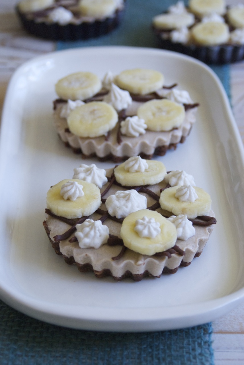 Not sure what to do with that ripe bunch of bananas sitting on the counter? I typically peel them, then slice into coins and place in the freezer for later use in my smoothies. Of course, making banana bread is always satisfying, however, since the fall weather is still quite warm in San Diego today, I needed something that would require no heat. My Raw Banana Cream Tartelettes ended up being the perfect choice.