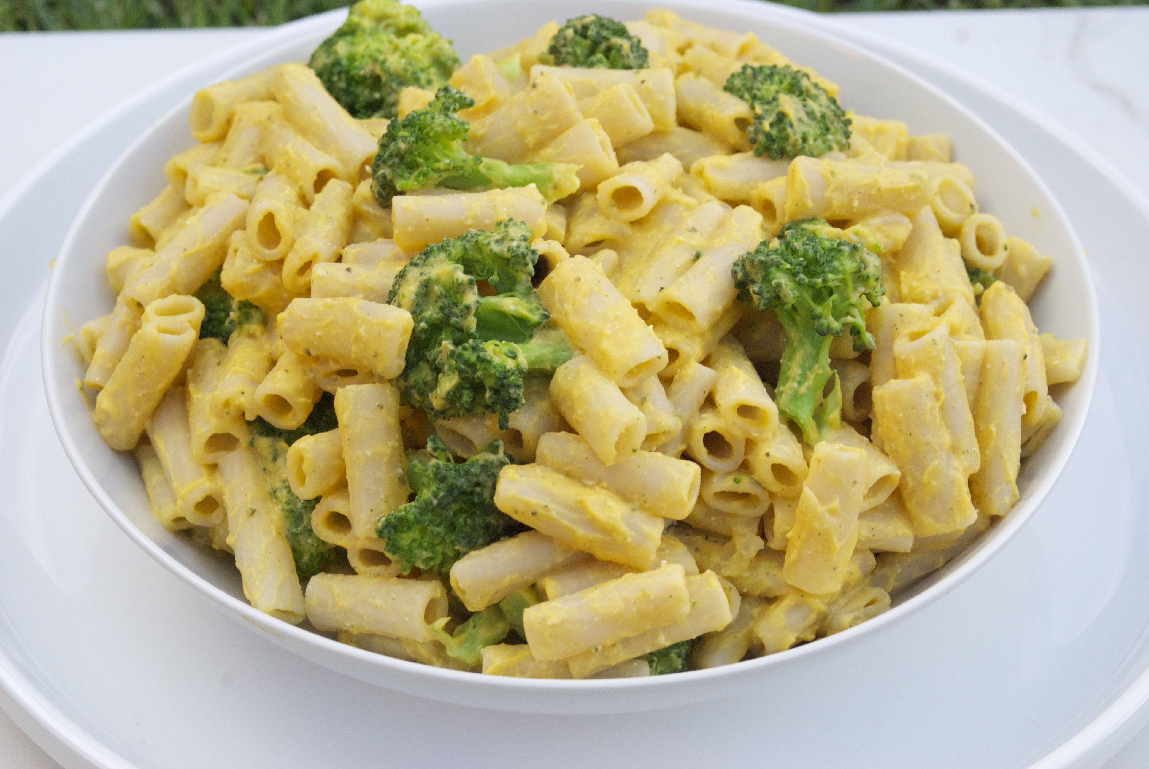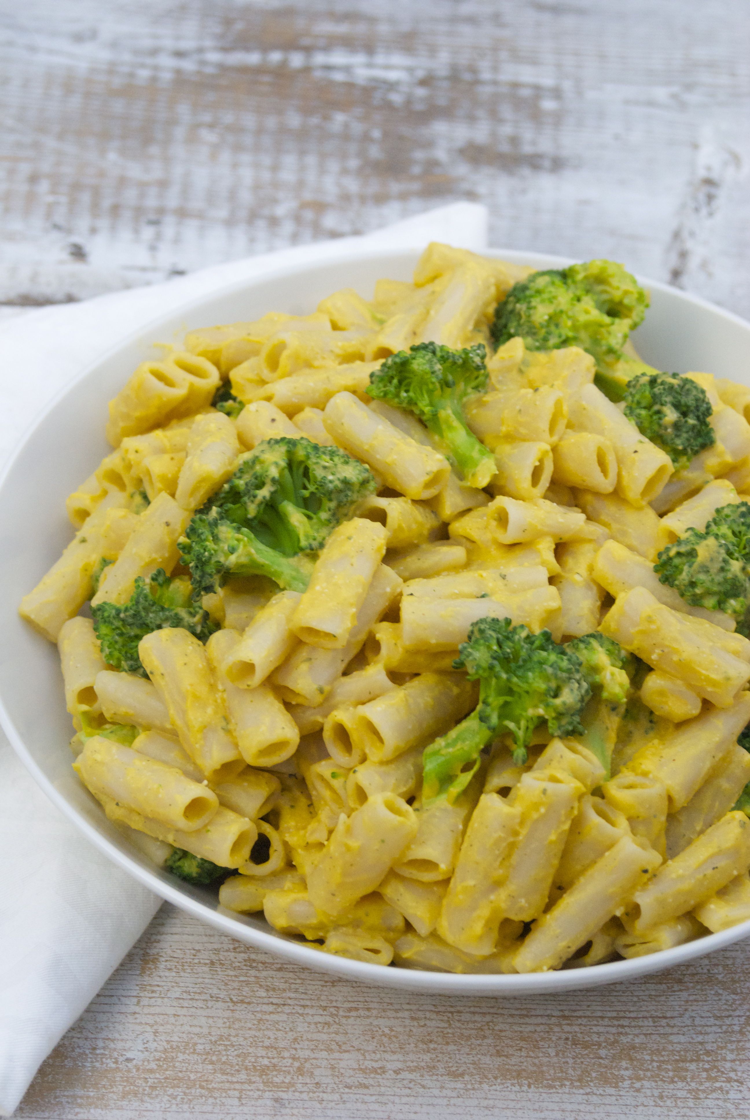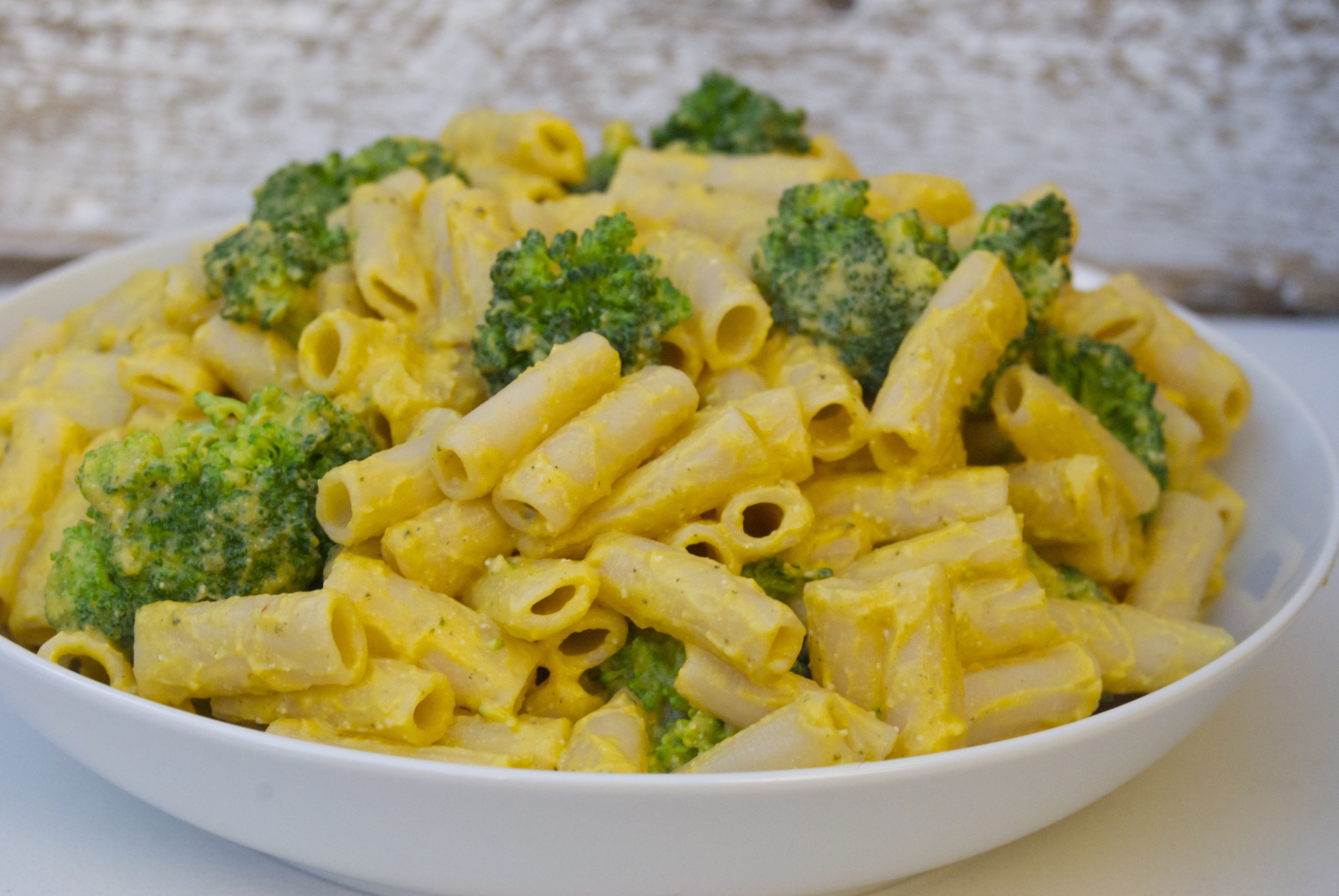 - Toss warm pasta, steamed broccoli and vegan cheese sauce together until pasta is coated.