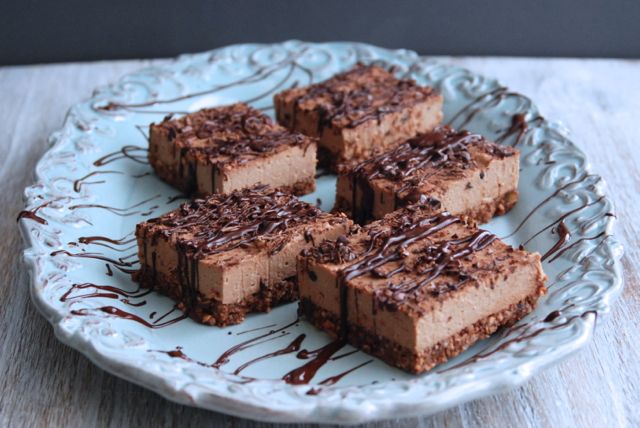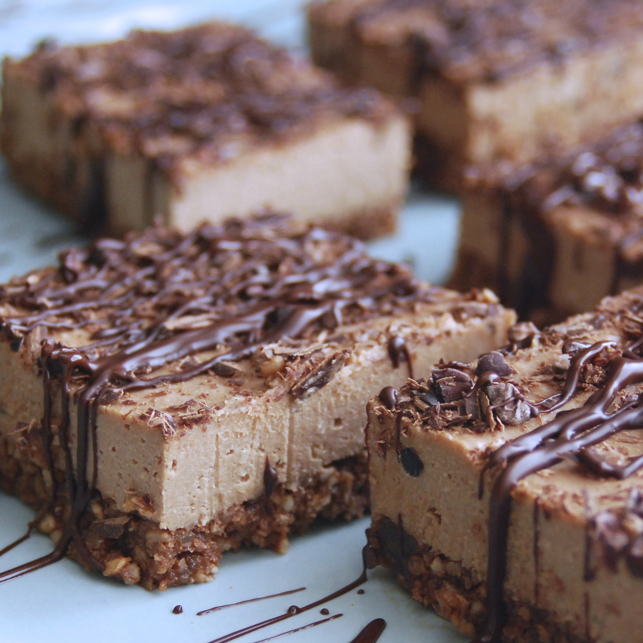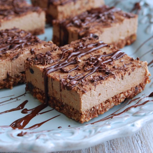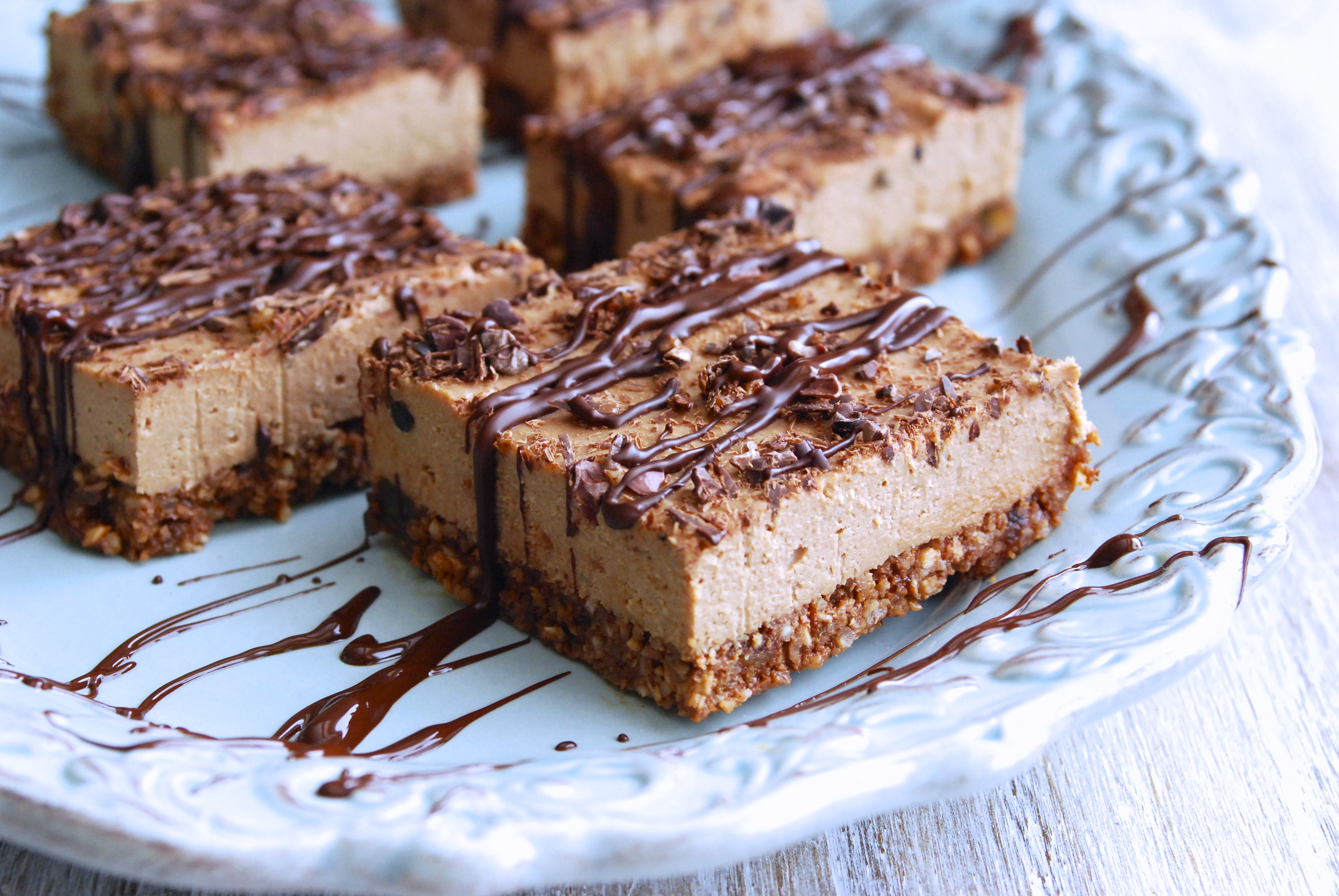 - Melt 1 dark chocolate bar using a double boiler. When melted, drizzle over the filling using a spoon or fork with a back and forth motion to create a pleasing pattern. Optional: sprinkle with cacao nibs for an added punch of chocolate love.