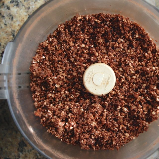 - Pulse until your crust comes together and nuts have broken down to your liking. Some people like their crust chunky, however, I like mine a little more broken up...it's totally up to you.