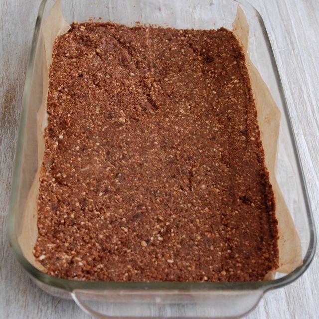 - Using a food processor, add soaked nuts, pitted dates, cacao powder, maple syrup and sea salt.
