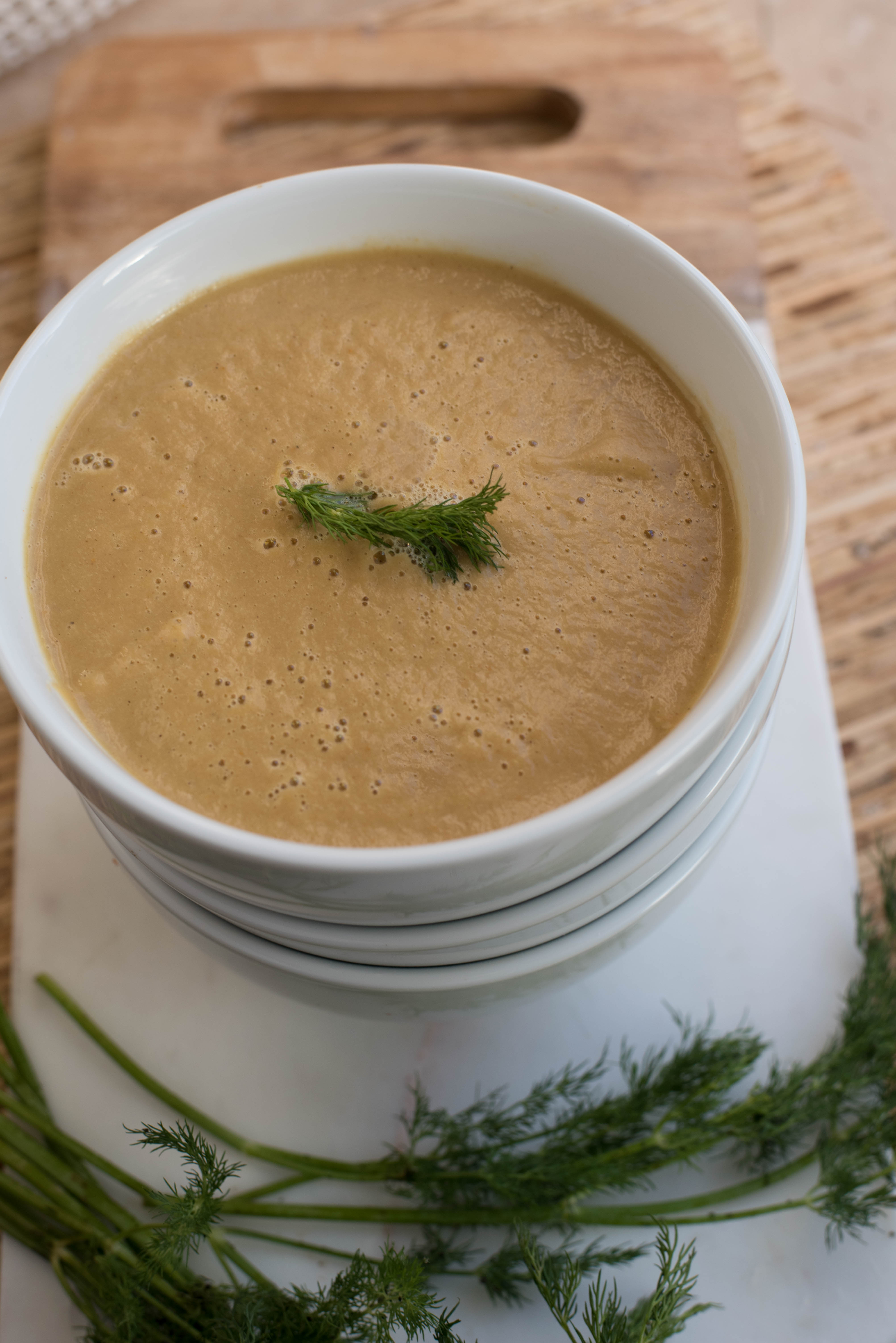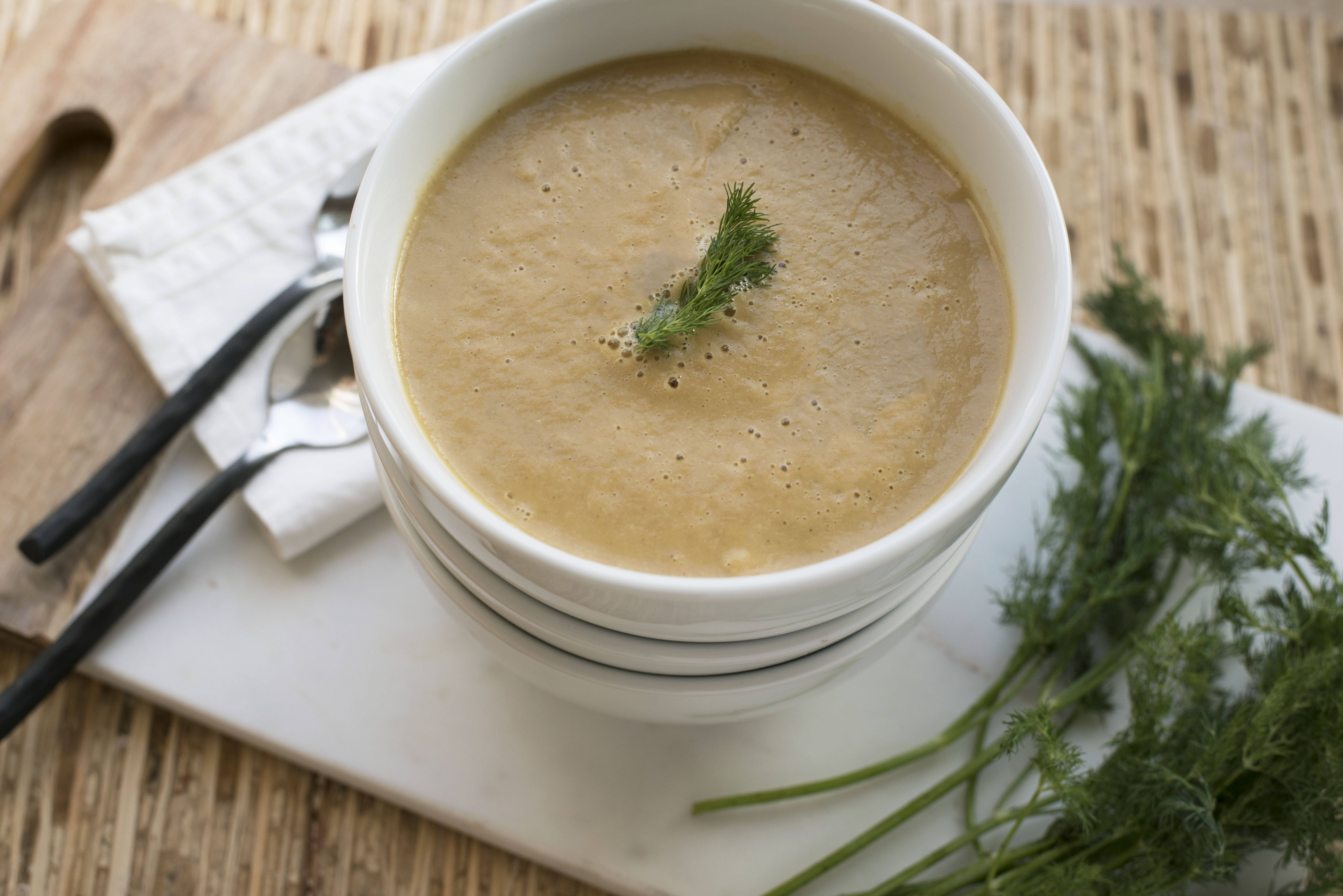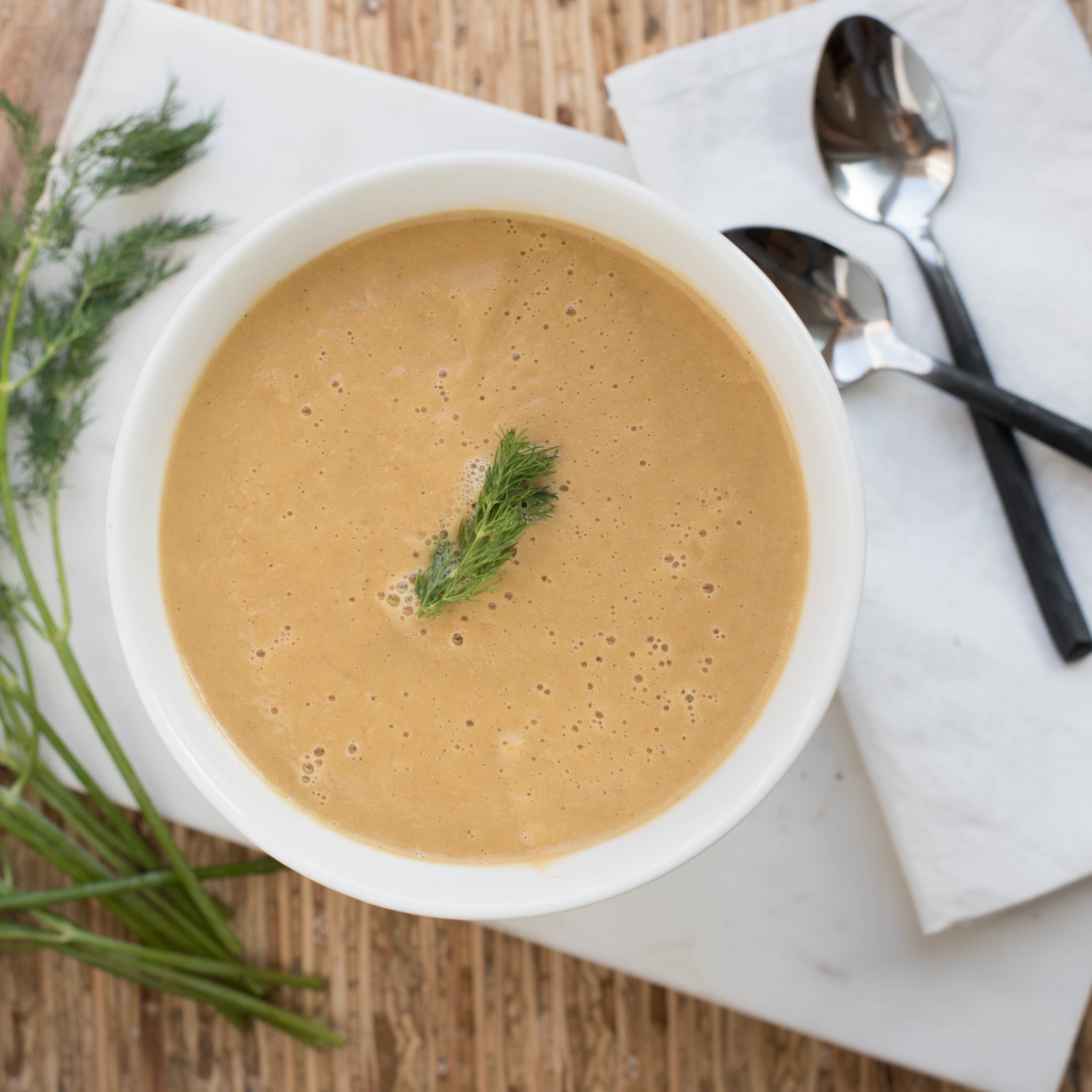 As I share my recipes and life with you, my goal is to be honest. Every recipe I share was created by me, and eaten by myself and my family. Every image was taken with my own two hands and my camera. Yes, the images are staged, however, I’m not great at that piece and am trying to stress less about it. Part of my sharing would not be authentic without sharing my journey with Sjogren’s Syndrome. Today’s recipe was created out of need to have soup. Yesterday was yet another day spent in the dental chair with multiple injections in an attempt to get numb. After that, a titanium rod, called an implant (great medical advances in dentistry – or is it?) was screwed into my jaw that once housed a perfectly fine tooth. The trauma from this crazy autoimmune disease runs deep, with some days better than others. I always allow about half a day to feel sorry for myself then make the conscious choice to put on big girl panties and pull up my cowgirl boots. After all, life isn’t waiting and I’ve decided to take it on, fake teeth and all. Today’s recipe was created out of a need to eat something soft and soothing while I heal. My Creamy Vegan Spiced Root Soup is nourishing, powered by plants and soothing to my soul. Now that’s a recipe!