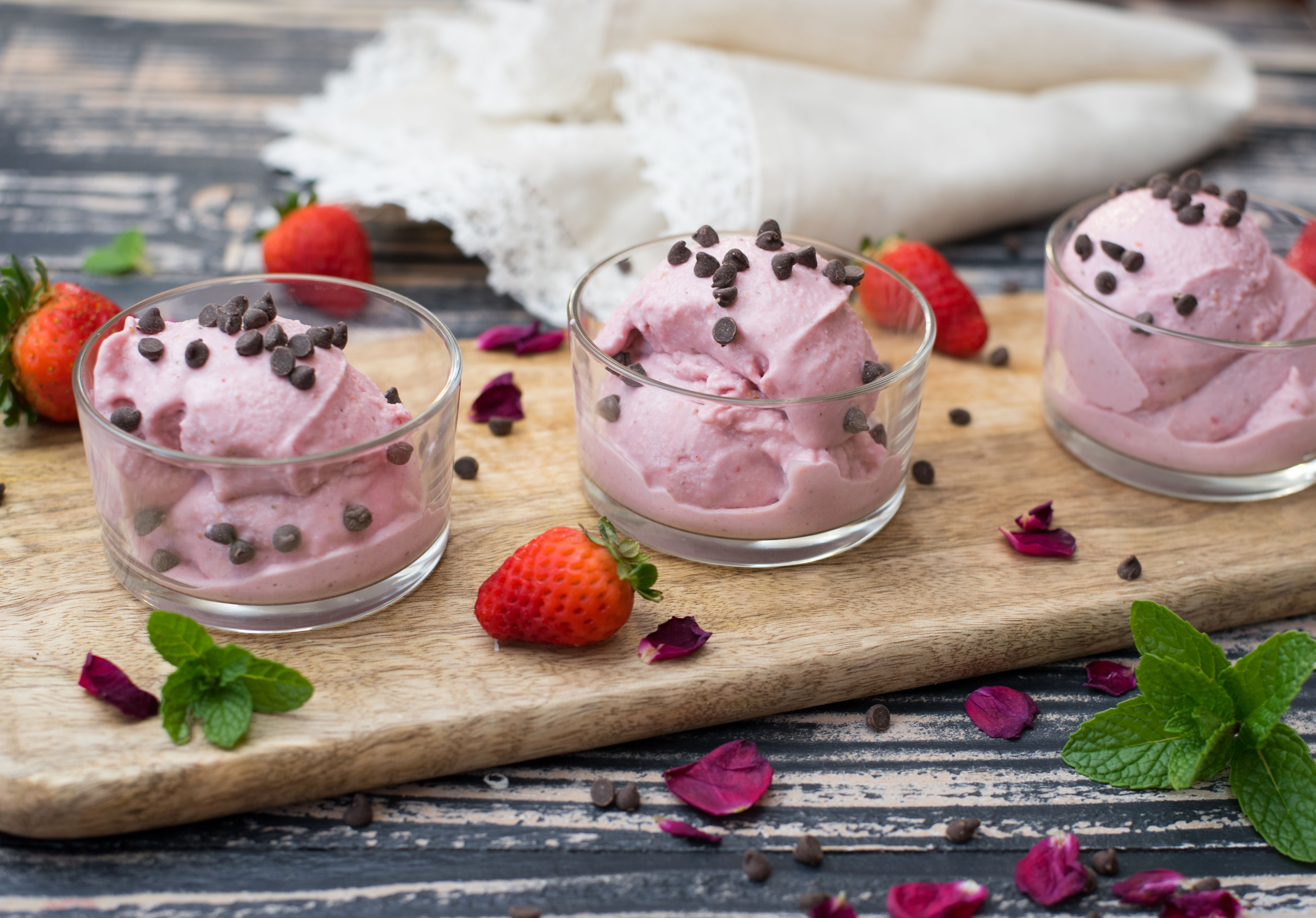Today I’m sharing a special treat made for my leap year baby, Megan. She turned 24 yesterday, with only six real birthdays (falling on the 29th of February) since her birth in 1992. She is as unique as the day she was born, standing at 6 feet tall, bursting with opinions and owning her incredibly distinctive artistic flare. She has always pushed my thinking beyond my personal comfort zone and I am forever grateful for that gift. Megan Rose was the driving force behind my desire to share recipes with all of you on a weekly basis. After watching her struggle with severe digestive issues and pain, I felt it was important to share the recipes I create with her in mind, giving options for others who struggle with similar issues. My Vegan Strawberry Ice Cream is dairy-free, gluten-free and made for this special day in celebration of Megan Rose “Sunshine” Kelly.