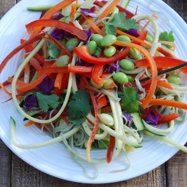 Veggie Noodles: Our Semi Raw Rainbow Pad Thai begins with thinly sliced and julienned vegetables. These raw “noodles” give our salad a leg-up in the nutrition department with their rainbow of colors, enzymes, vitamins and minerals.