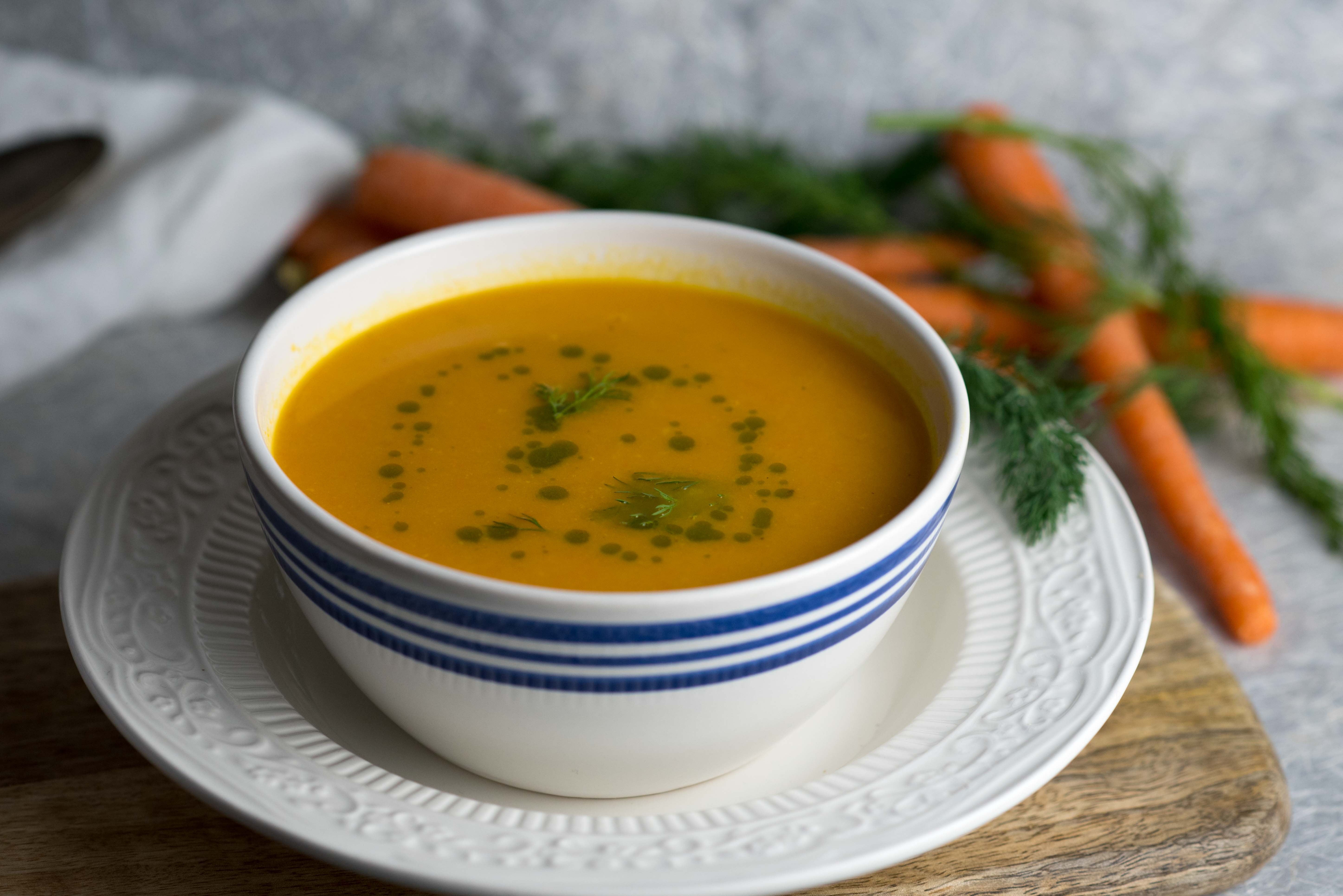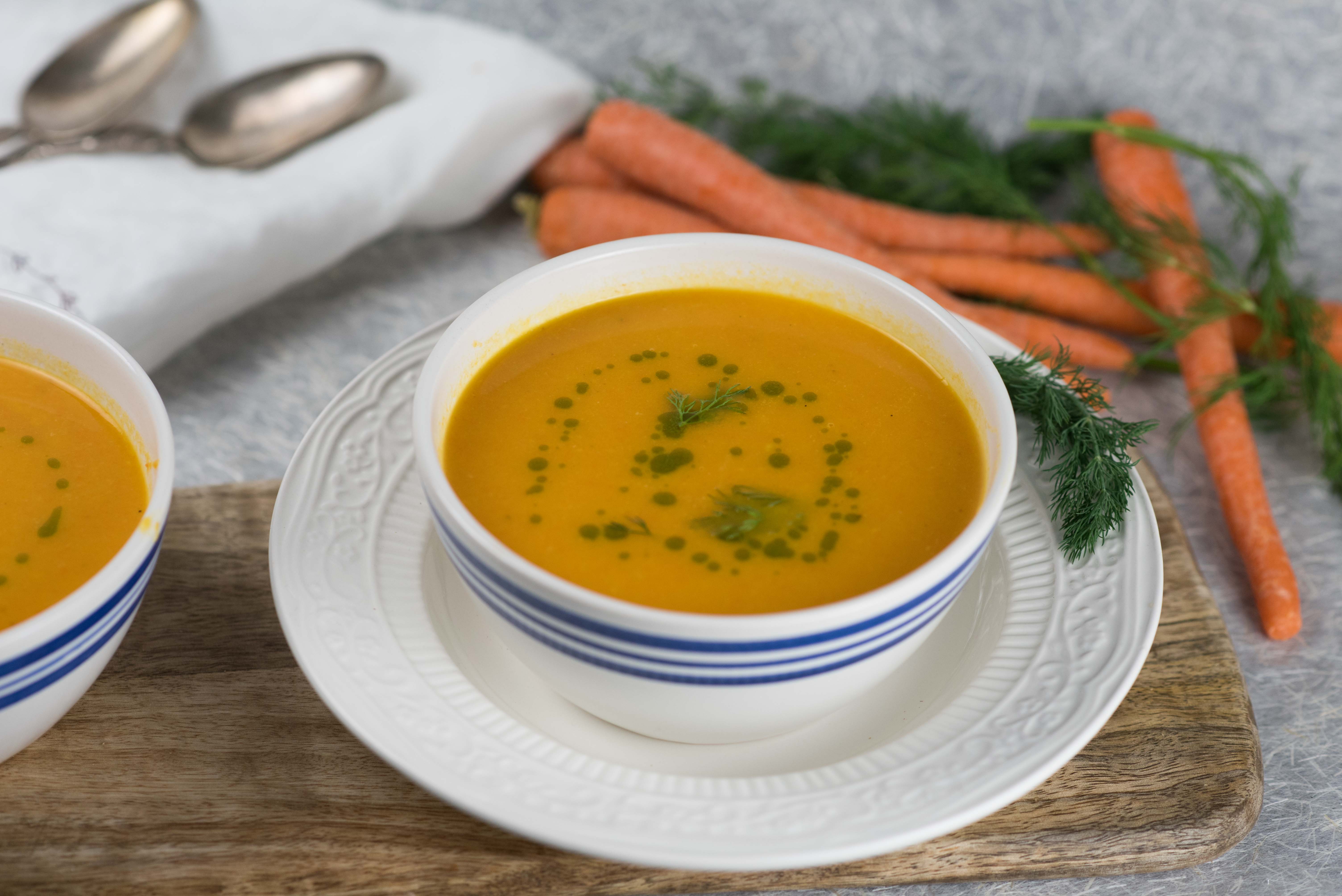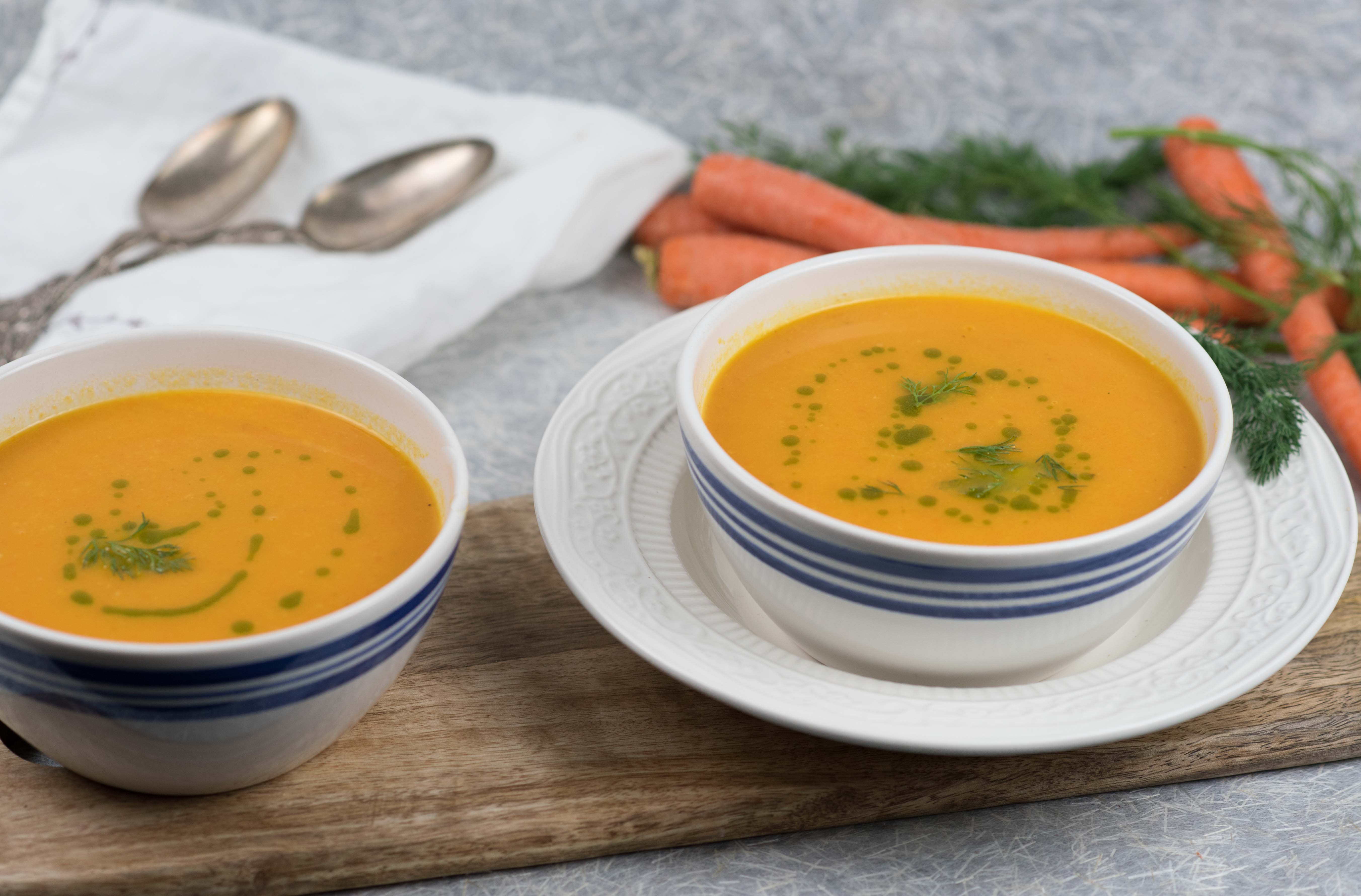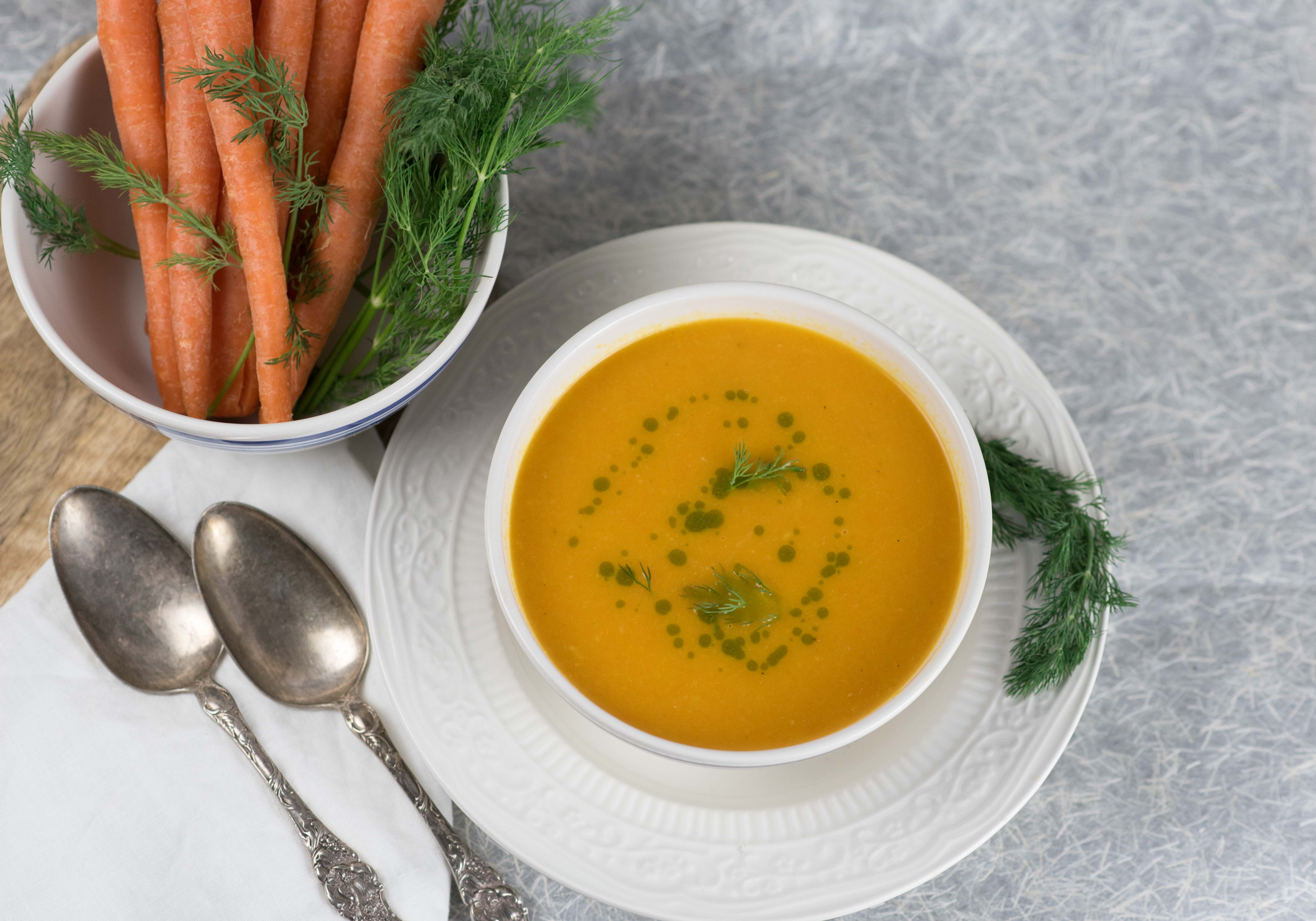As I plan my Easter menu, I’ve decided to include an easy to make Carrot Ginger Soup, perfect as a starter for your holiday meal or can be made as the main event with a nice vegan frittata. Again, as we transition from winter to spring, soups are a delicious balance for those warmer days and cooler nights. Rich in beta-carotene (converted to vitamin A in the liver), carrots are well known to promote better vision and help in the prevention of macular degeneration. Did you also know carrots also help promote healthy, glowing skin? Vitamin A helps reduce wrinkles, dryness and even out the skin tone.