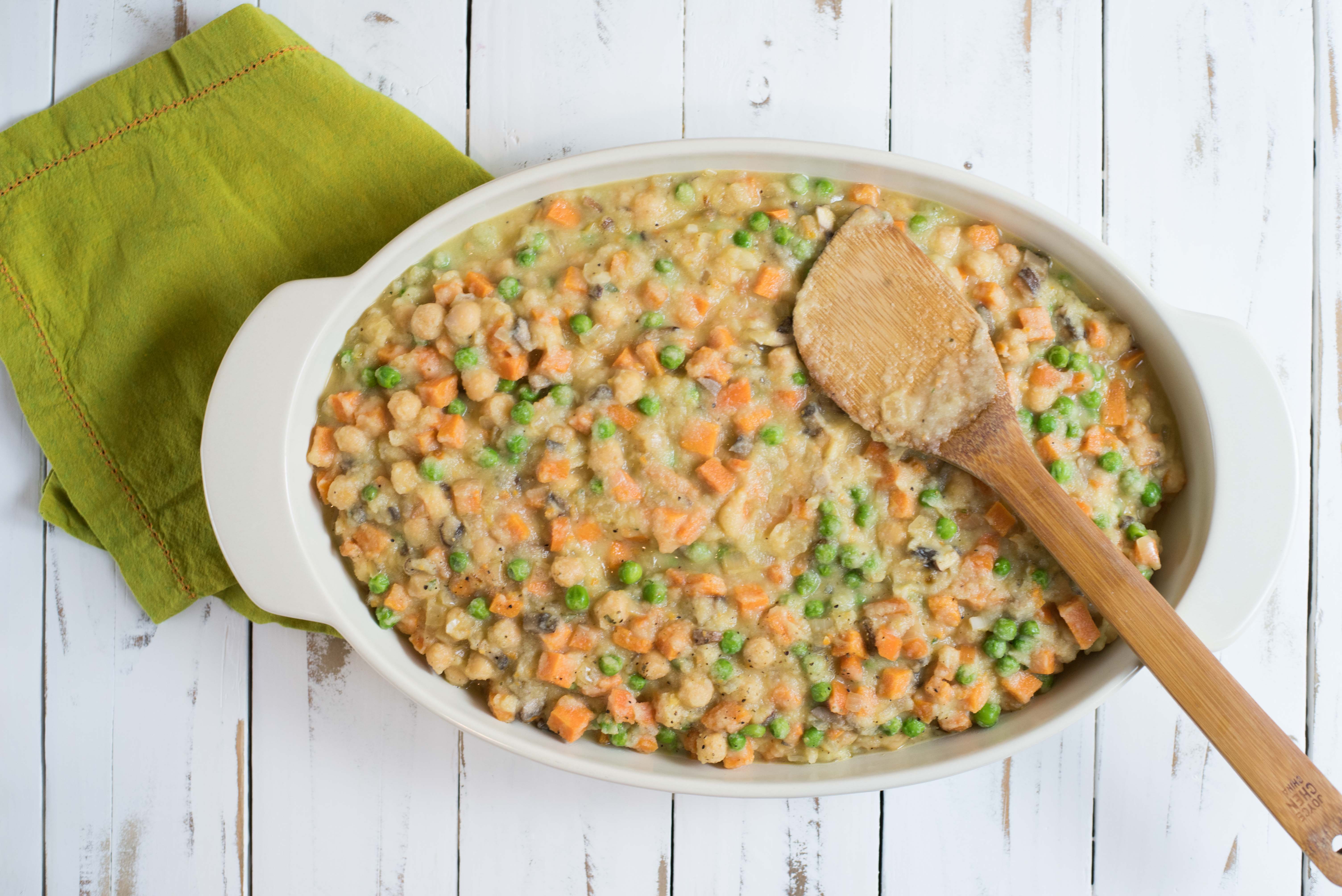 - Pour vegetable mixture into a large casserole dish.