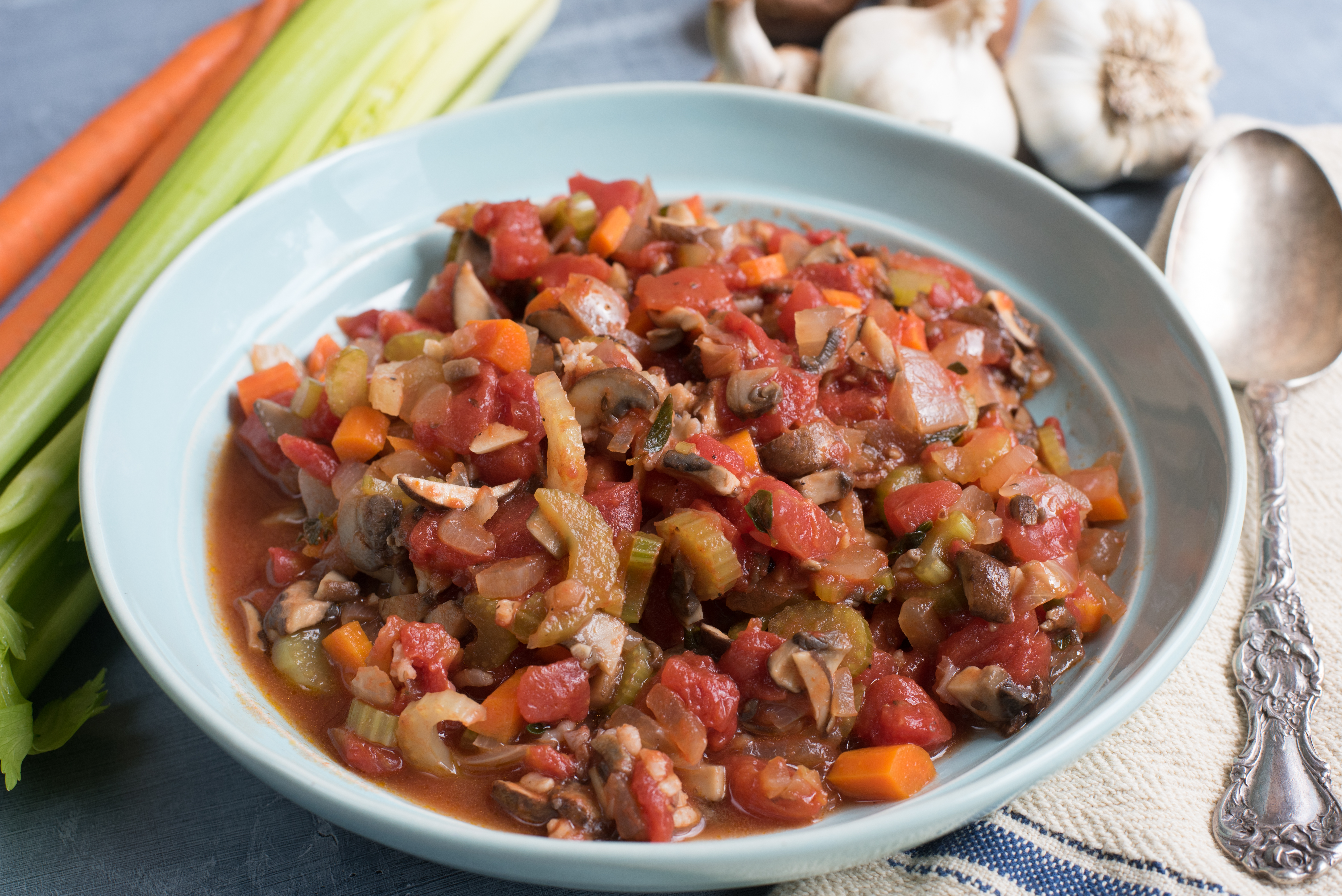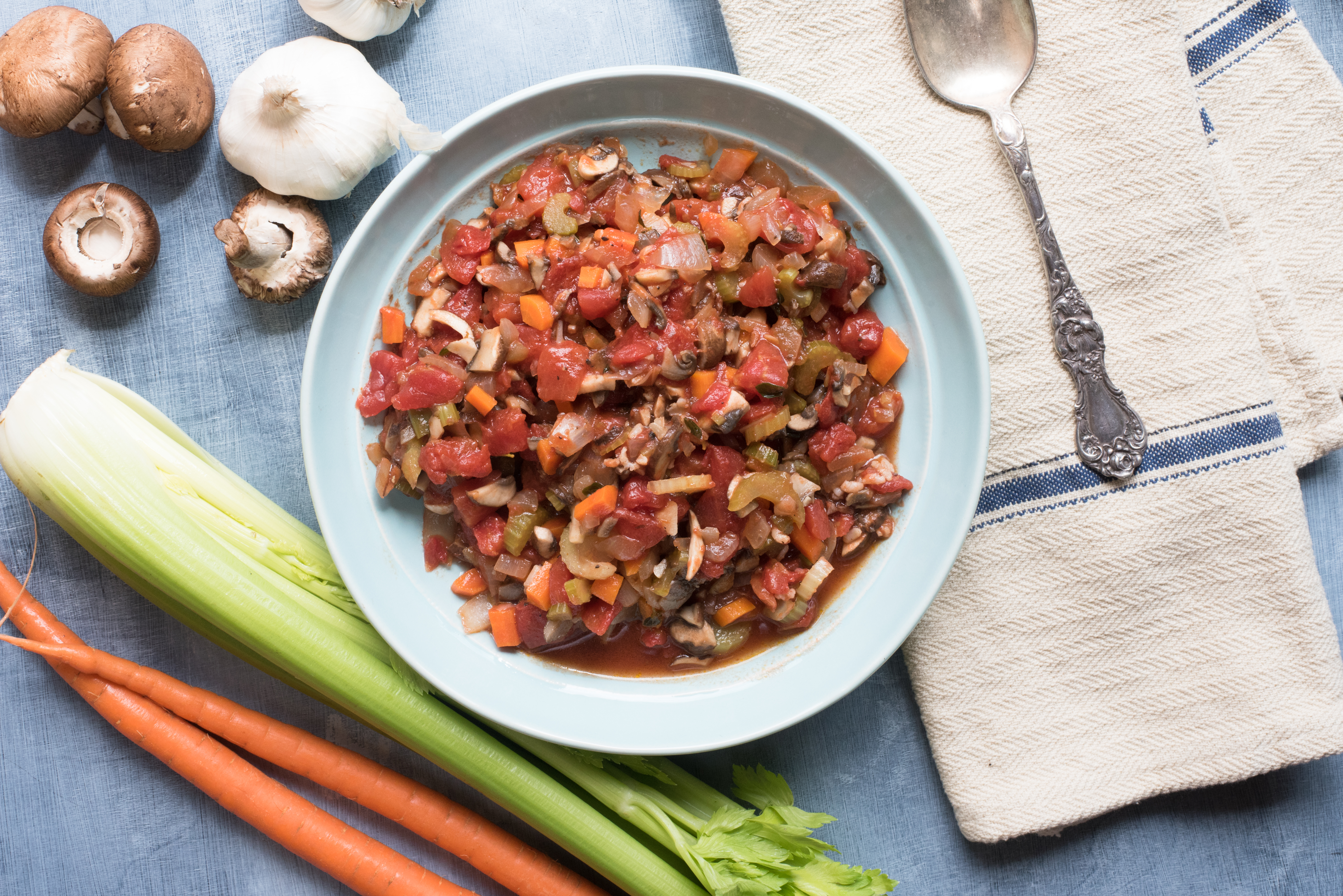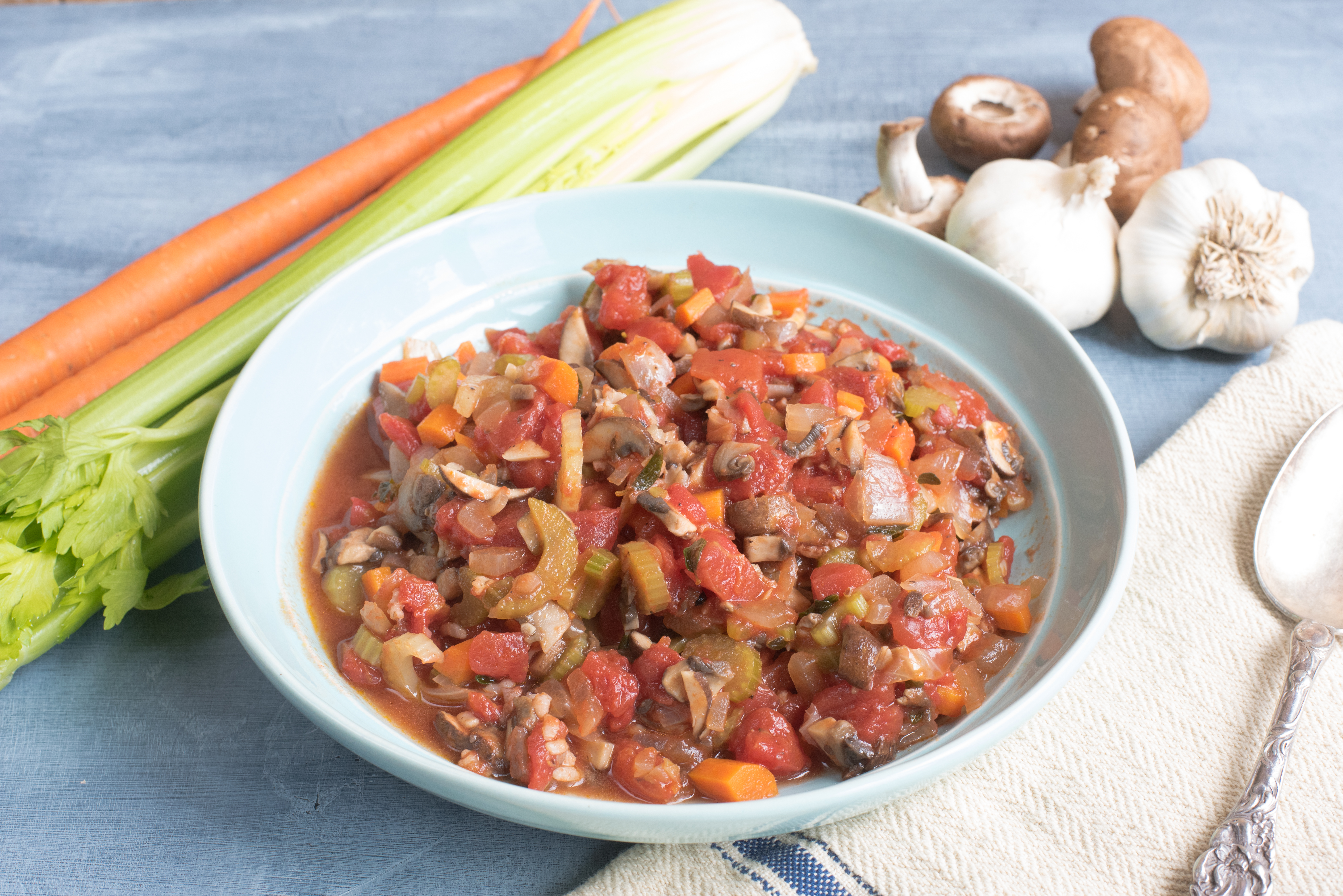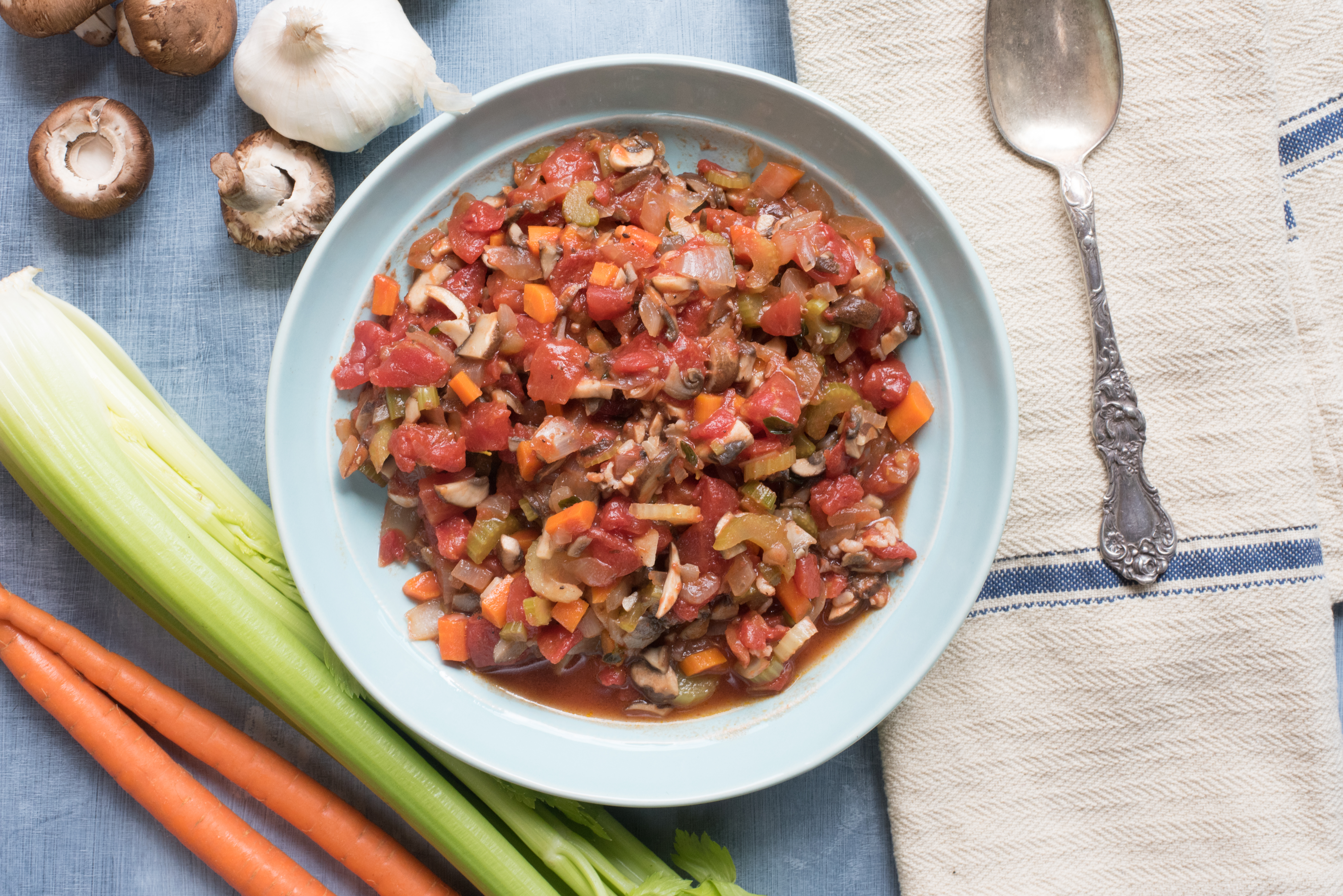 Our Vegan Vegetable Ragu is made with 100% organic veggies, including, Cremini mushrooms, celery, carrots, canned tomatoes, plenty of garlic and fresh garden herbs. Sautéed in a little organic extra-virgin olive oil and dinner is ready. Serve over warm rice, potatoes or cauliflower millet mash found here.