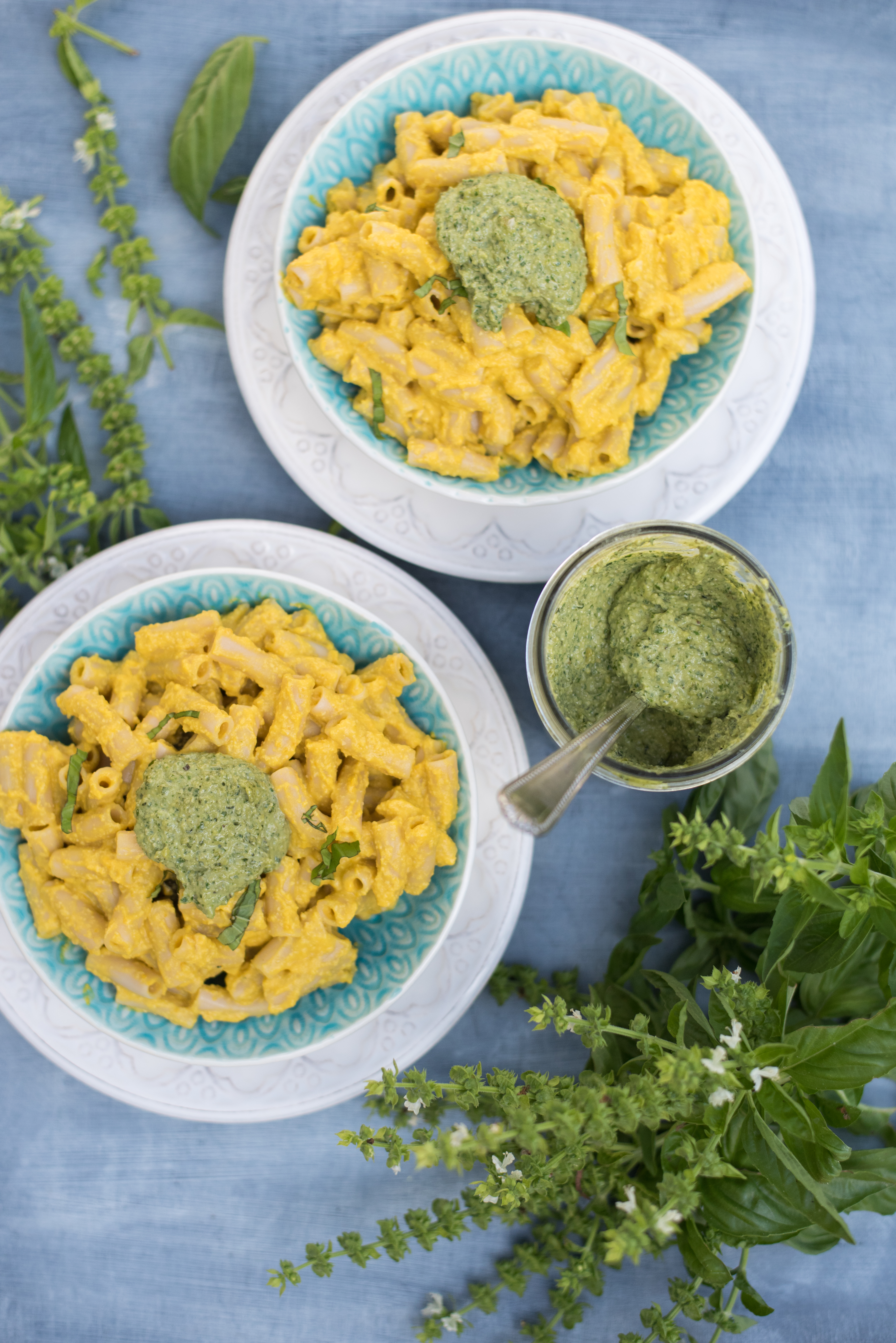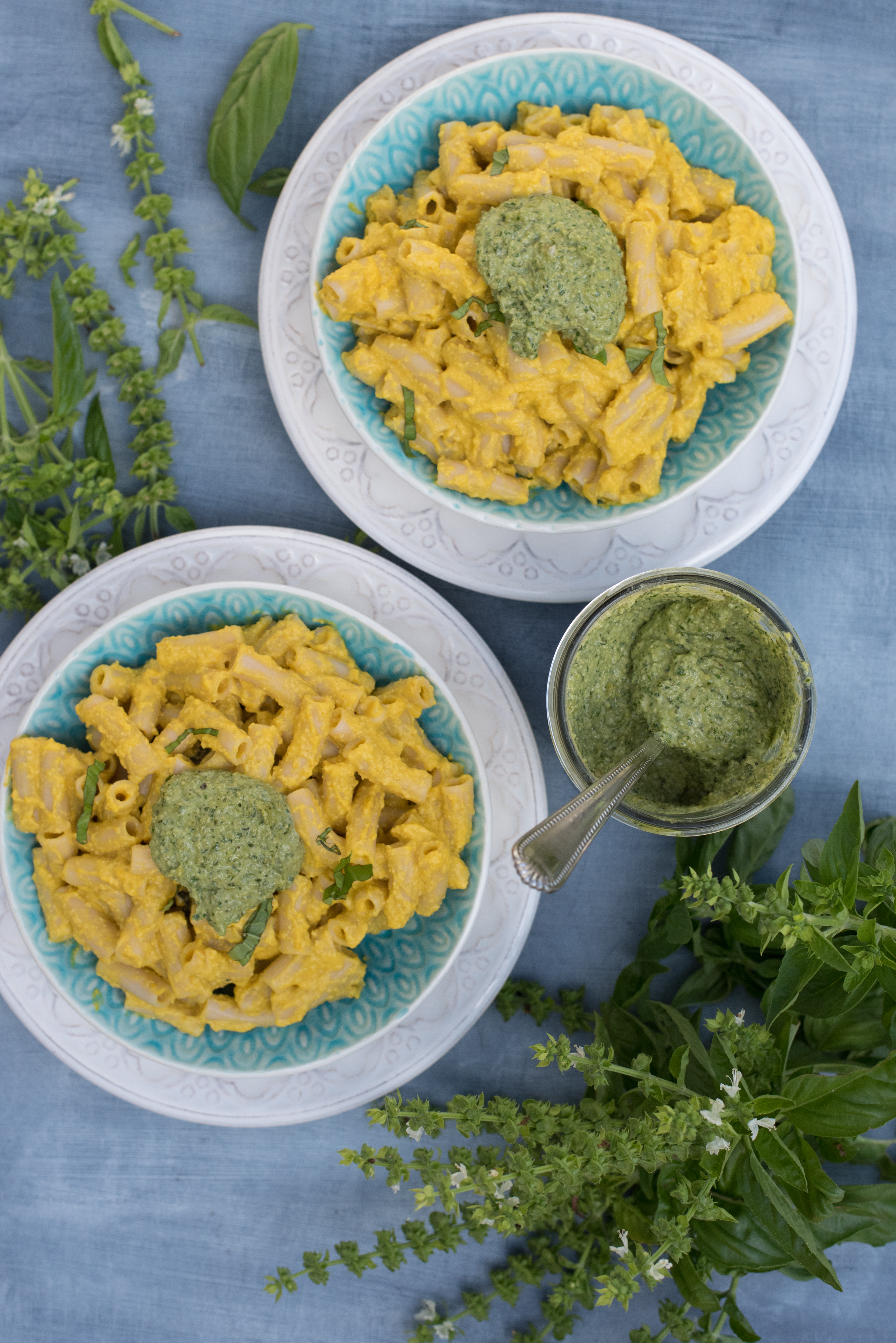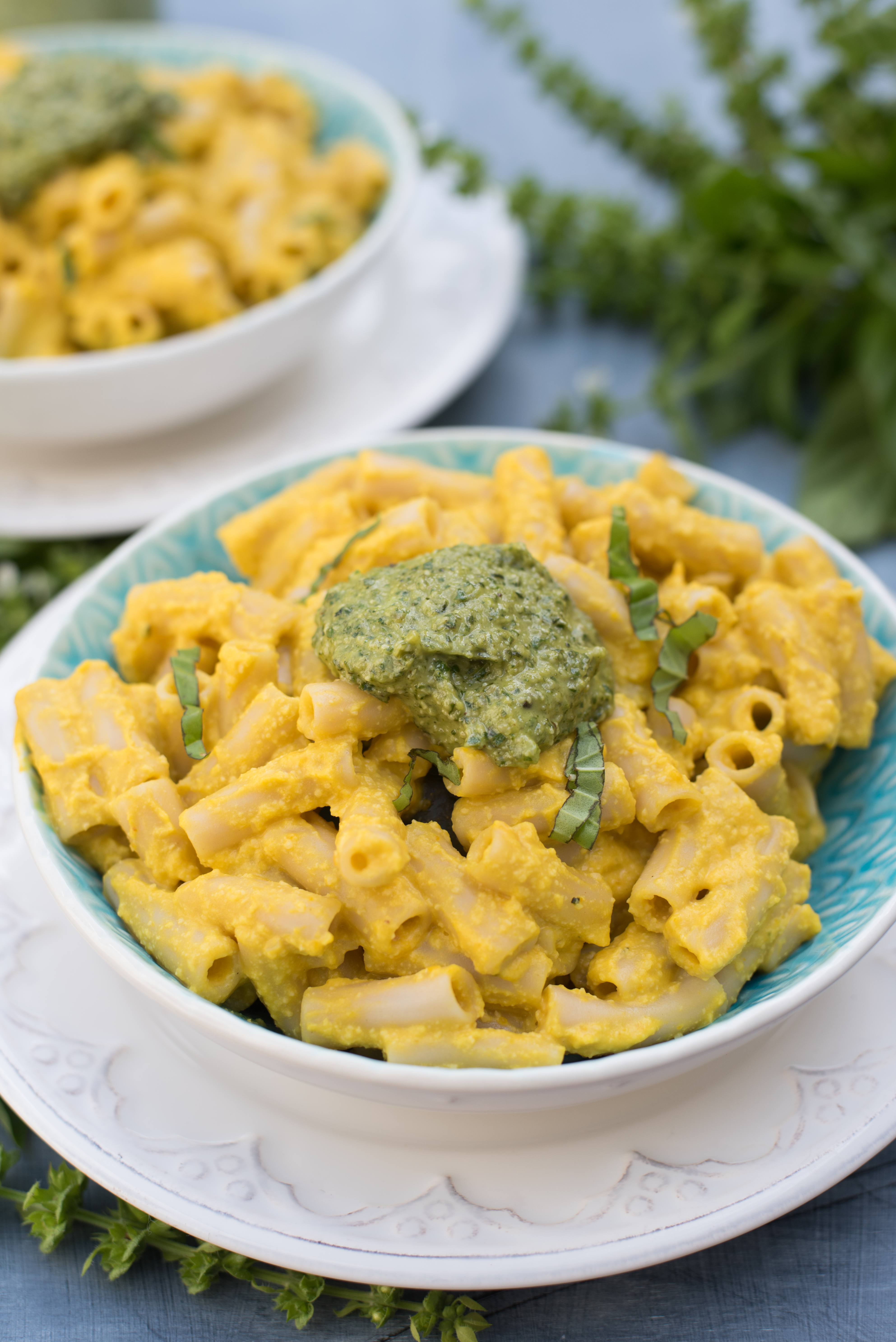We’re welcoming fall today with our Creamy Kabocha Pasta topped with fresh pesto. Delightfully thick and cheesy, our recipe starts with Tinkyada gluten-free rice pasta with an inventive mix of baked kabocha squash and soaked cashews to create an incredibly scrumptious familiar comfort food without the downside of dairy.