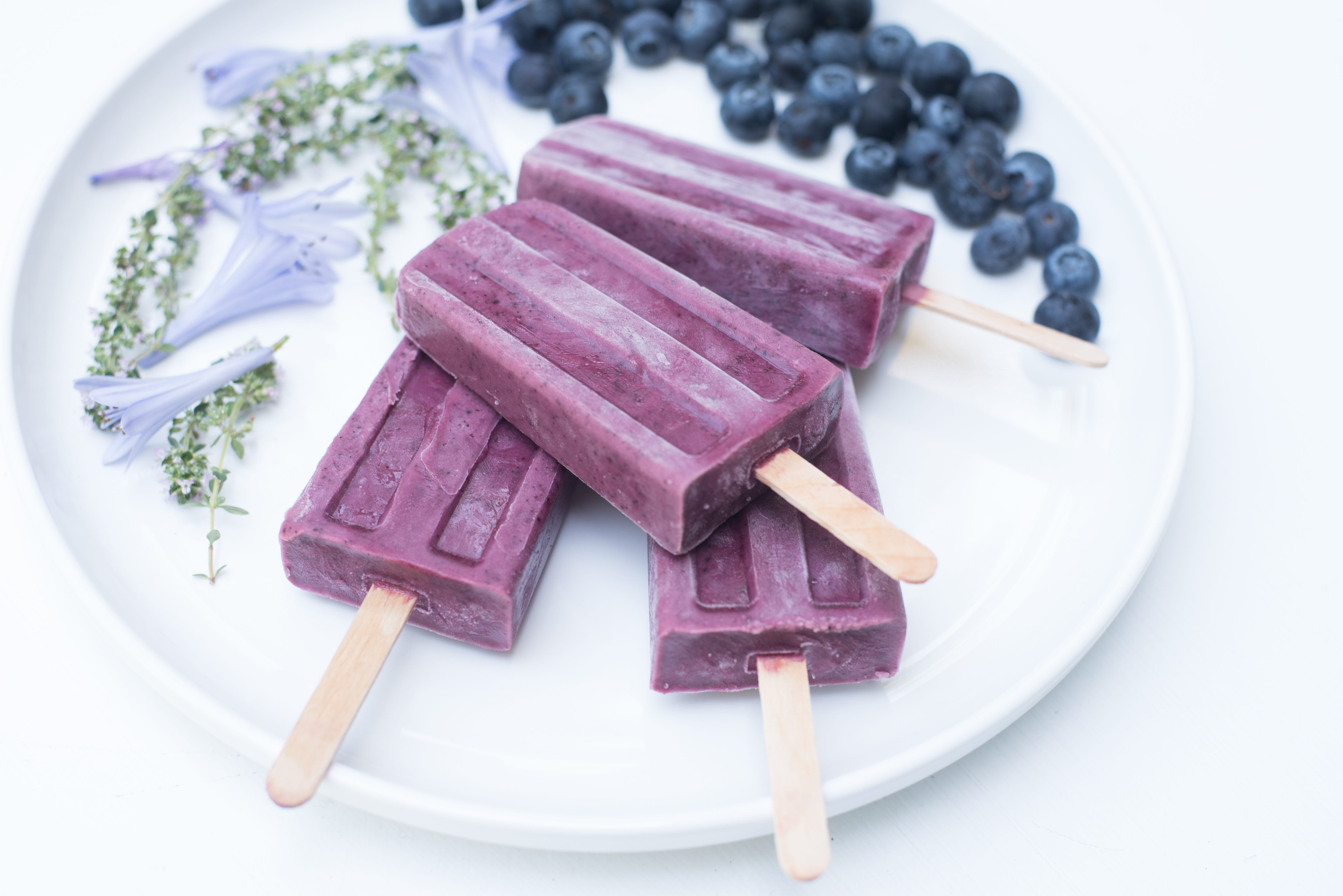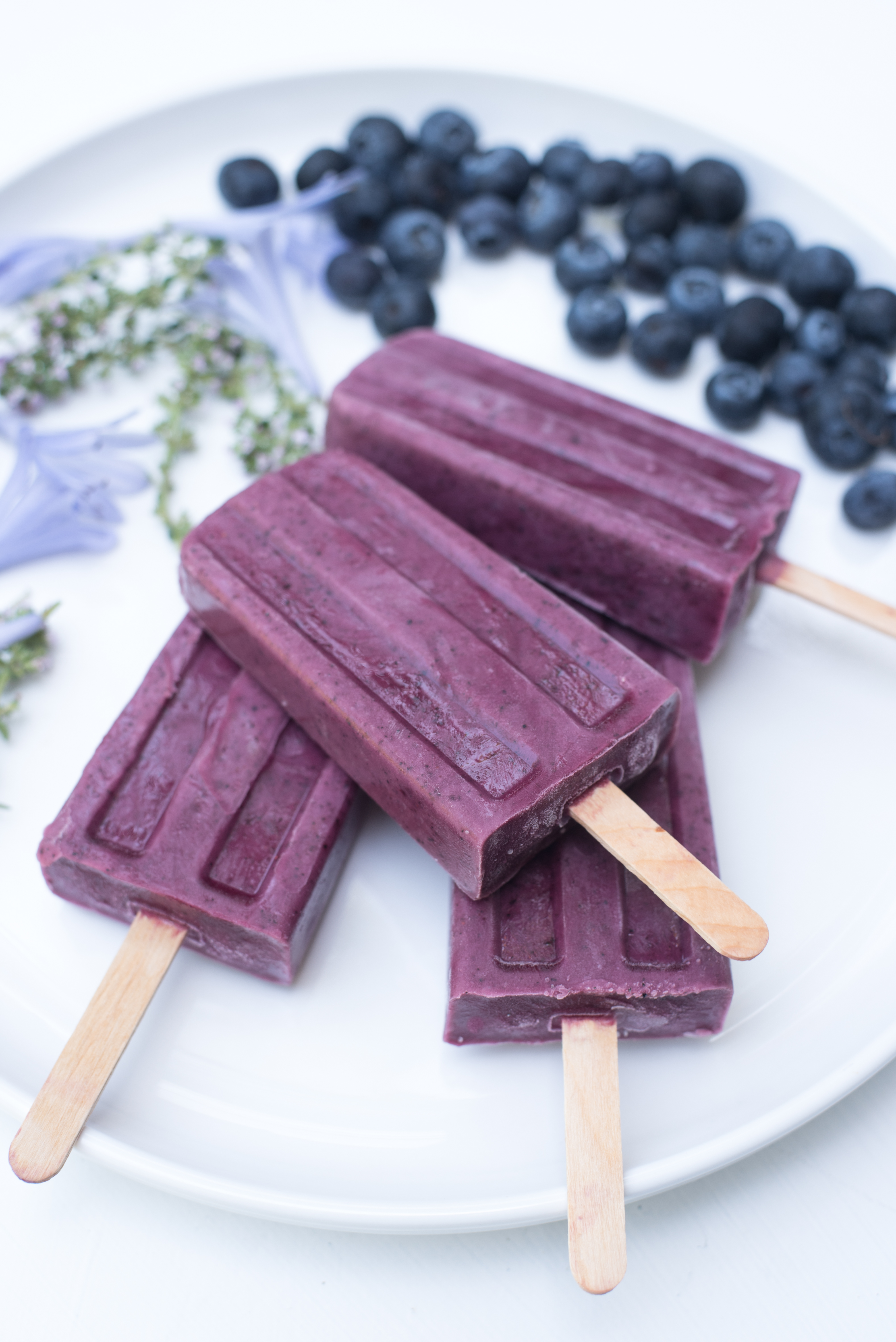 My husband Bill brought home a HUGE container of organic blueberries the other day! Of course, these plump berries were nothing short of inspiring for our sweet and cooling Coconut Blueberry Ice Cream Pops. There is something so nostalgic about lapping up cream on a stick while sticky drips run down your hand…summer perfection!