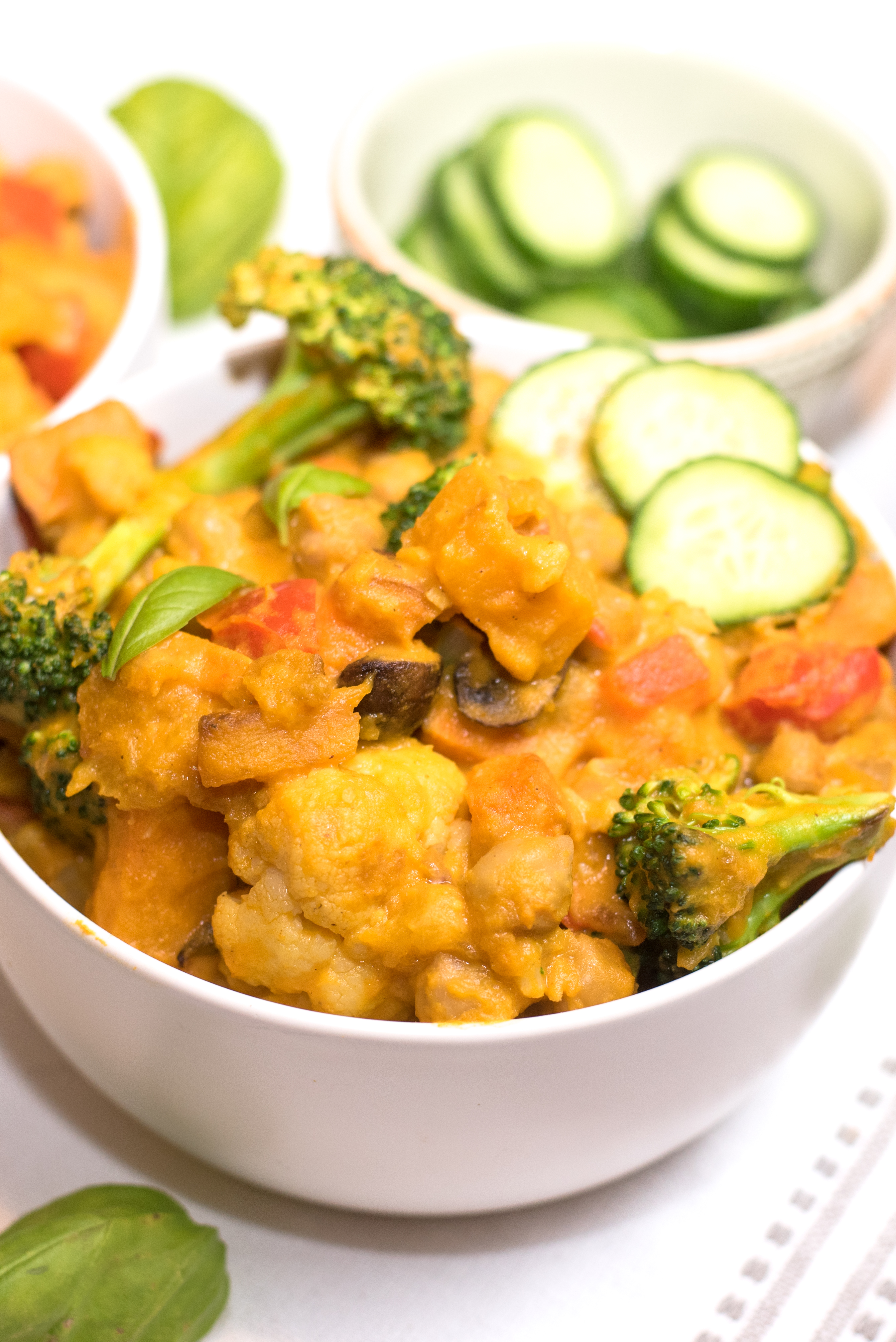 Our Creamy Curry is a lovely addition to roasted veggies and works well as a dip for raw veggie sticks when refrigerated.