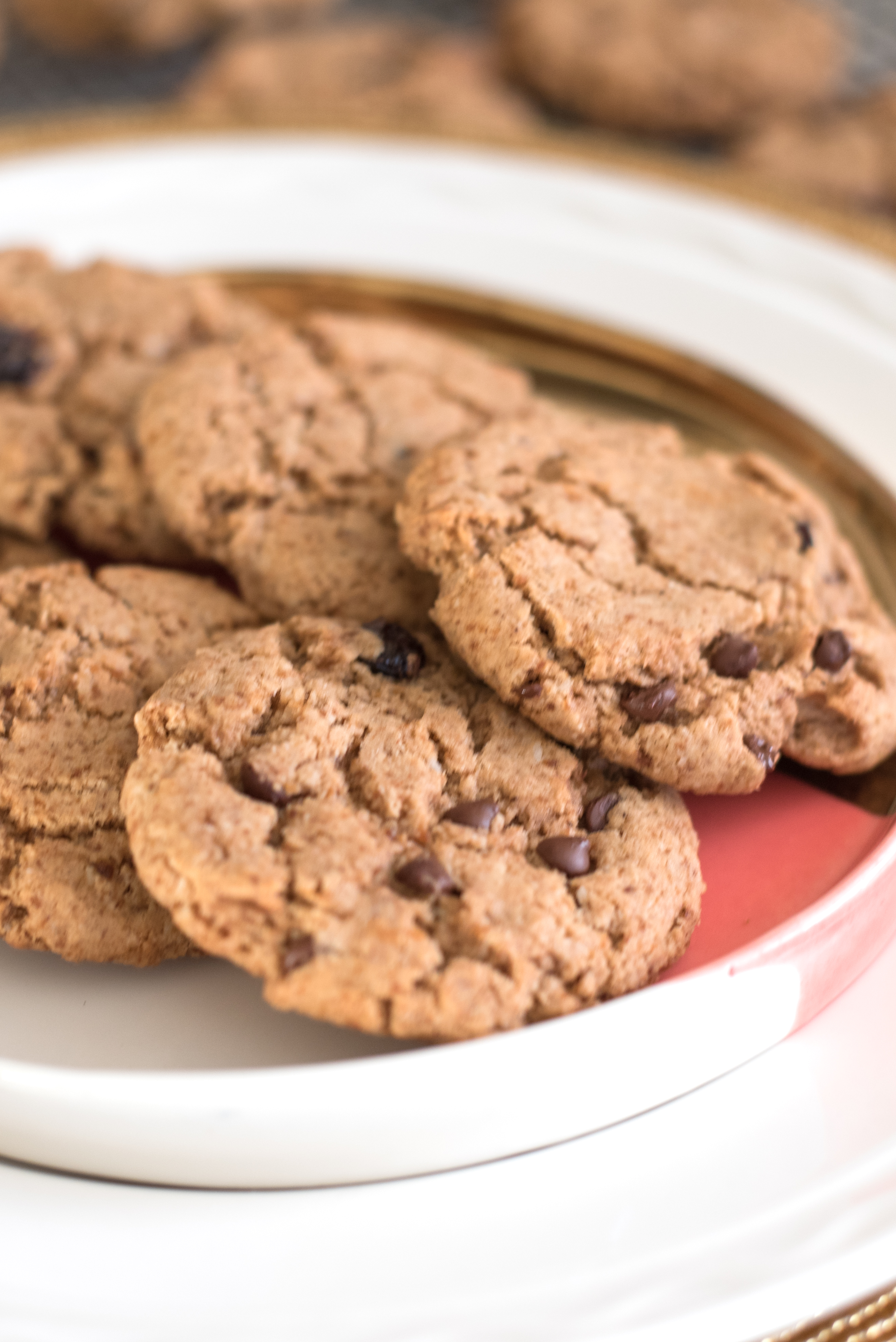 Following a recipe when baking is extremely important, especially when using gluten-free flours and nut butters. We have included a list of the brands we used for this recipe in the notes section. Some nut butters are more runny than others, especially if making your own. I would say, the best rule of thumb is to make your first batch following our recipe and then branch out with your own special touches and favorite brands from there. The finished dough should have the look and feel of your typical chocolate chip cookie dough; however, after rolling the dough into a ball, I always flatten them slightly with the back of a spatula.
